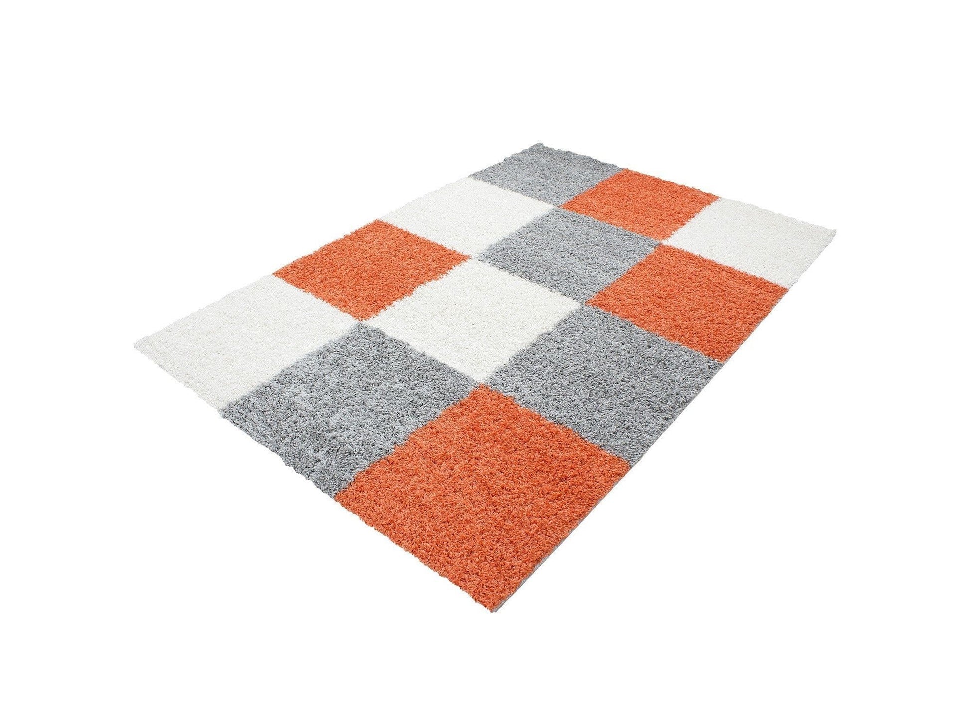 سجادة غرفة المعيشة المشعرة، ذات الوبر الطويل والوبر العالي، مربعة الشكل، بلون الطين، باللون الأبيض والرمادي