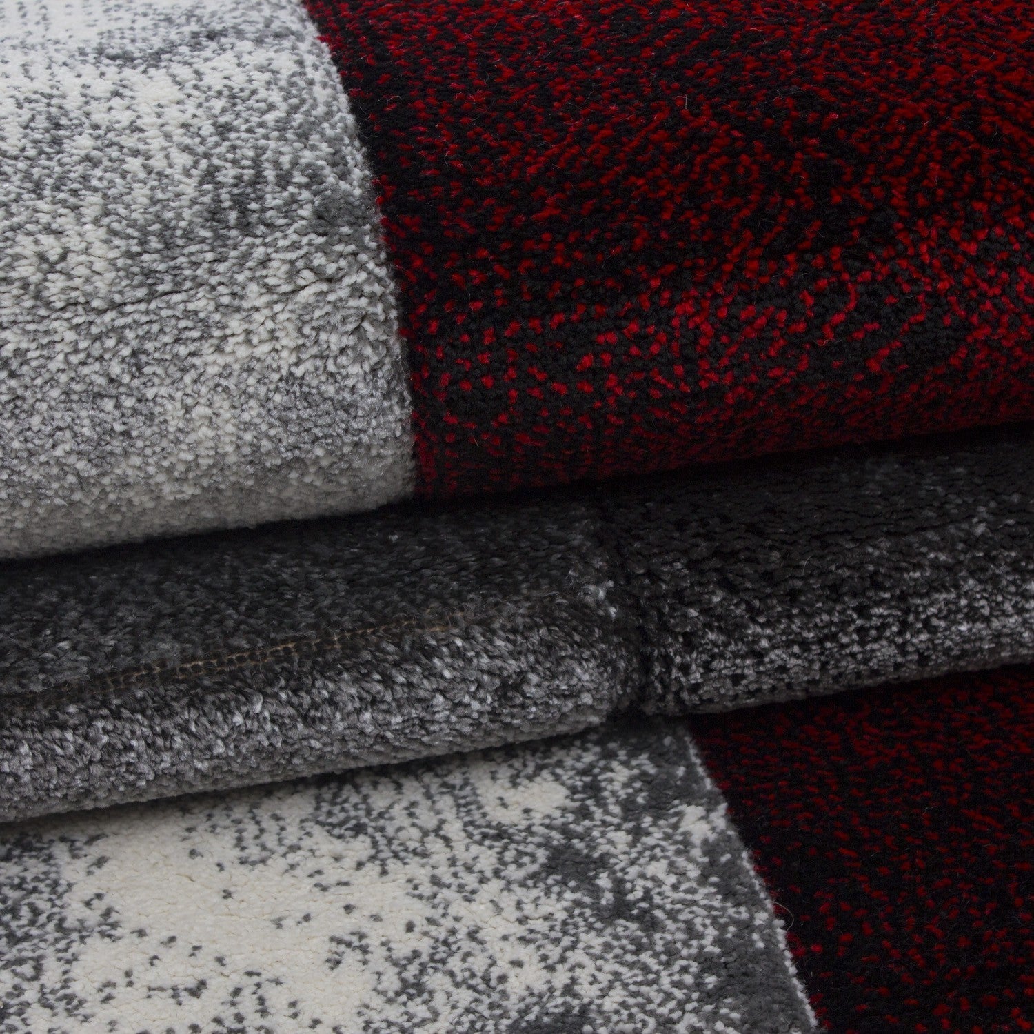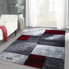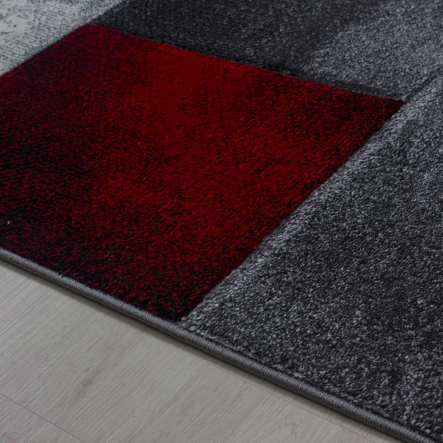 Designer Teppich Modern Kariert Muster Konturenschnitt Schwarz Grau Rot