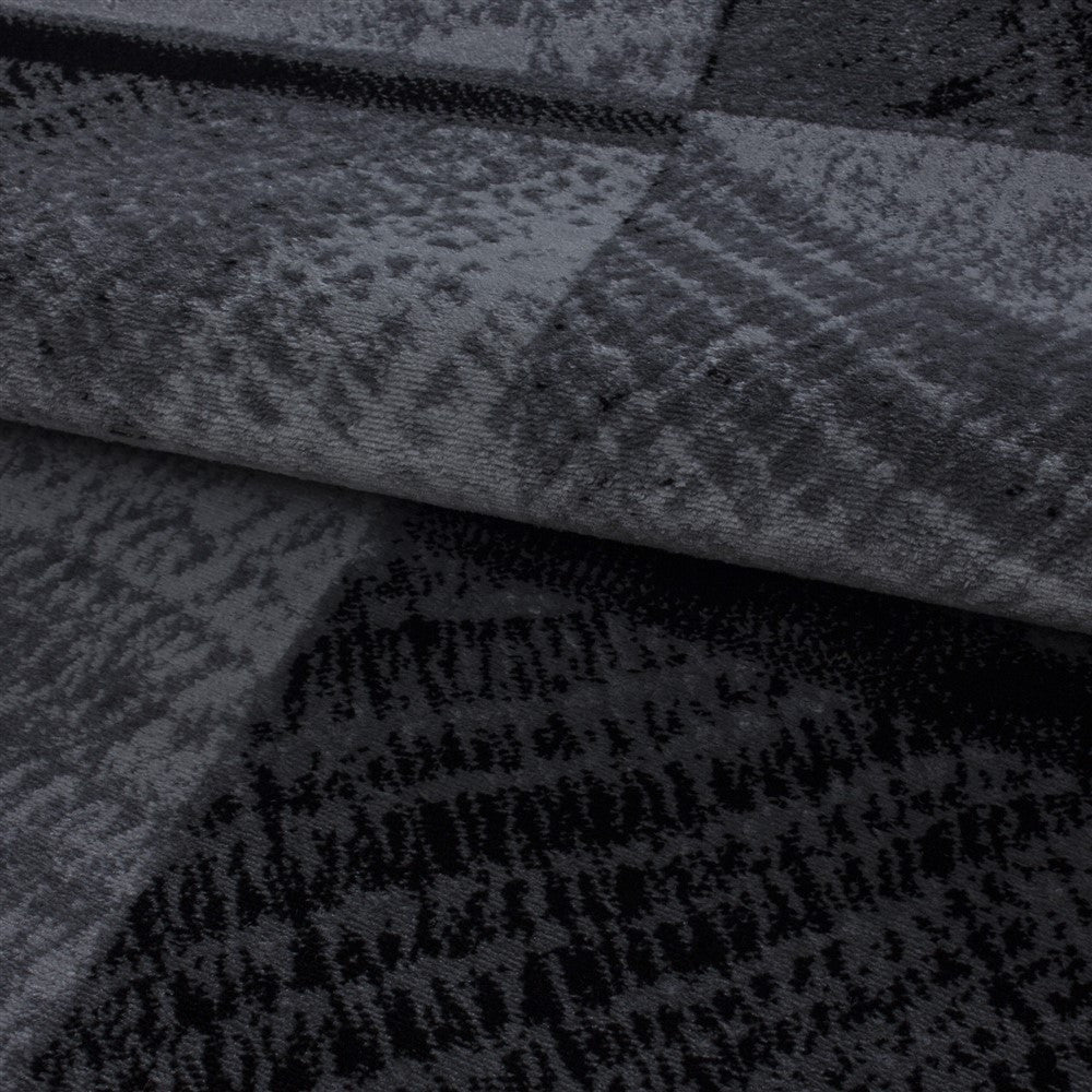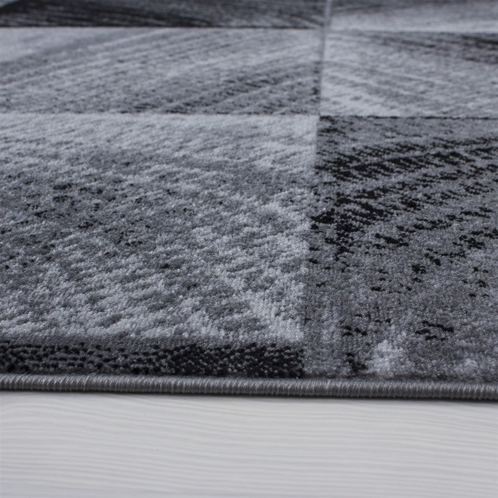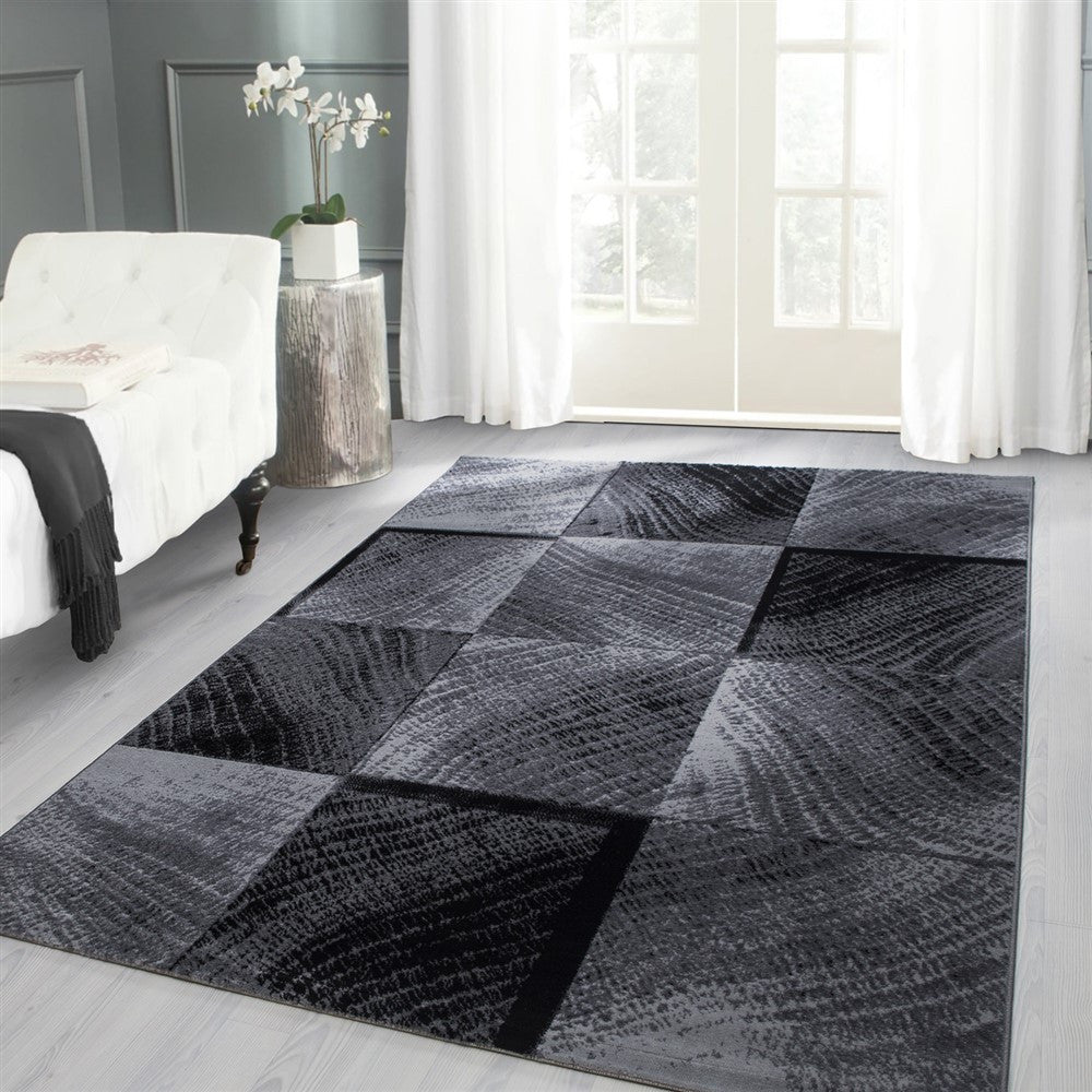 Moderner Designer Wohnzimmer Teppich Karo Muster Schwarz Grau Meliert