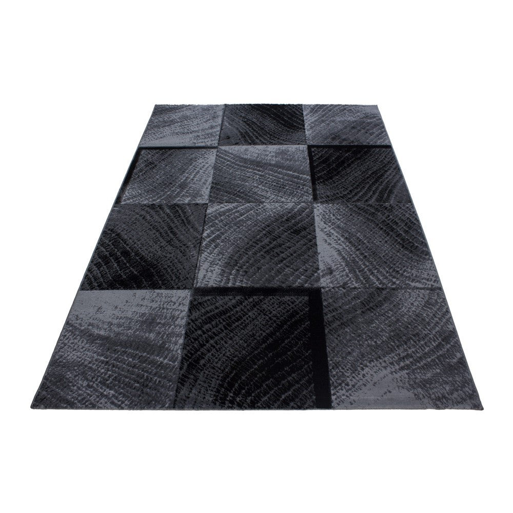 Moderner Designer Wohnzimmer Teppich kariert Wellenmotiv Plus 8003 Schwarz