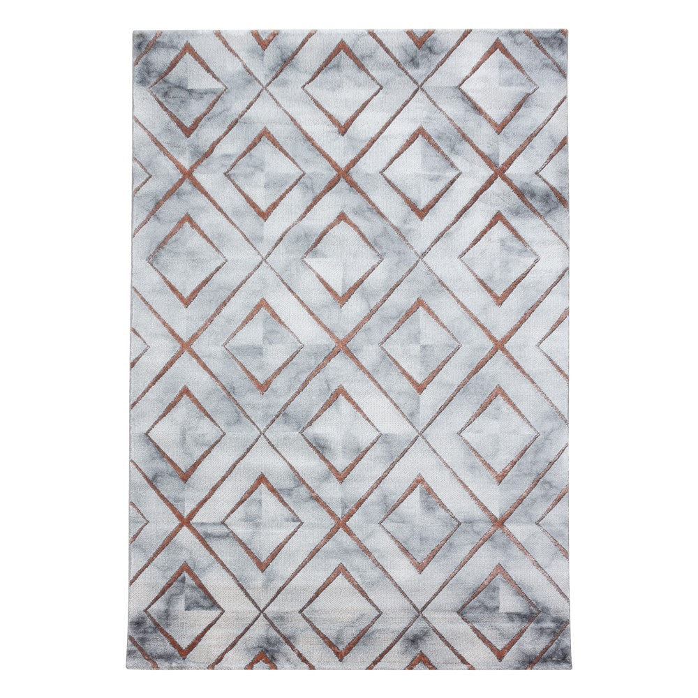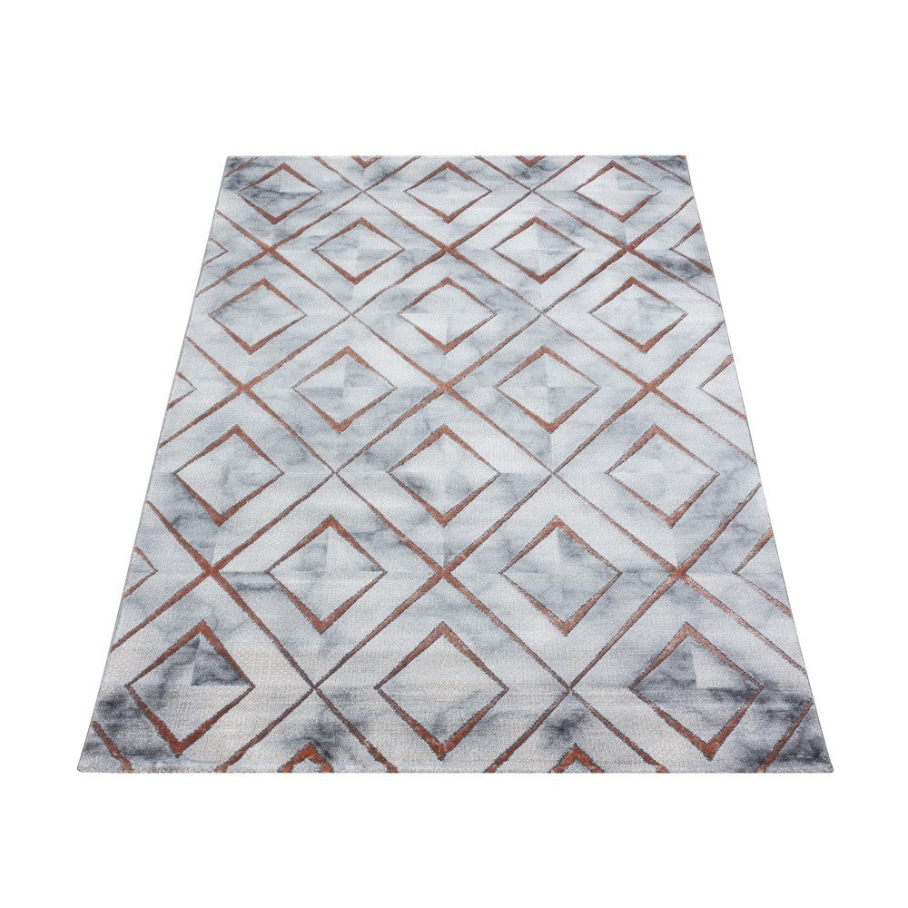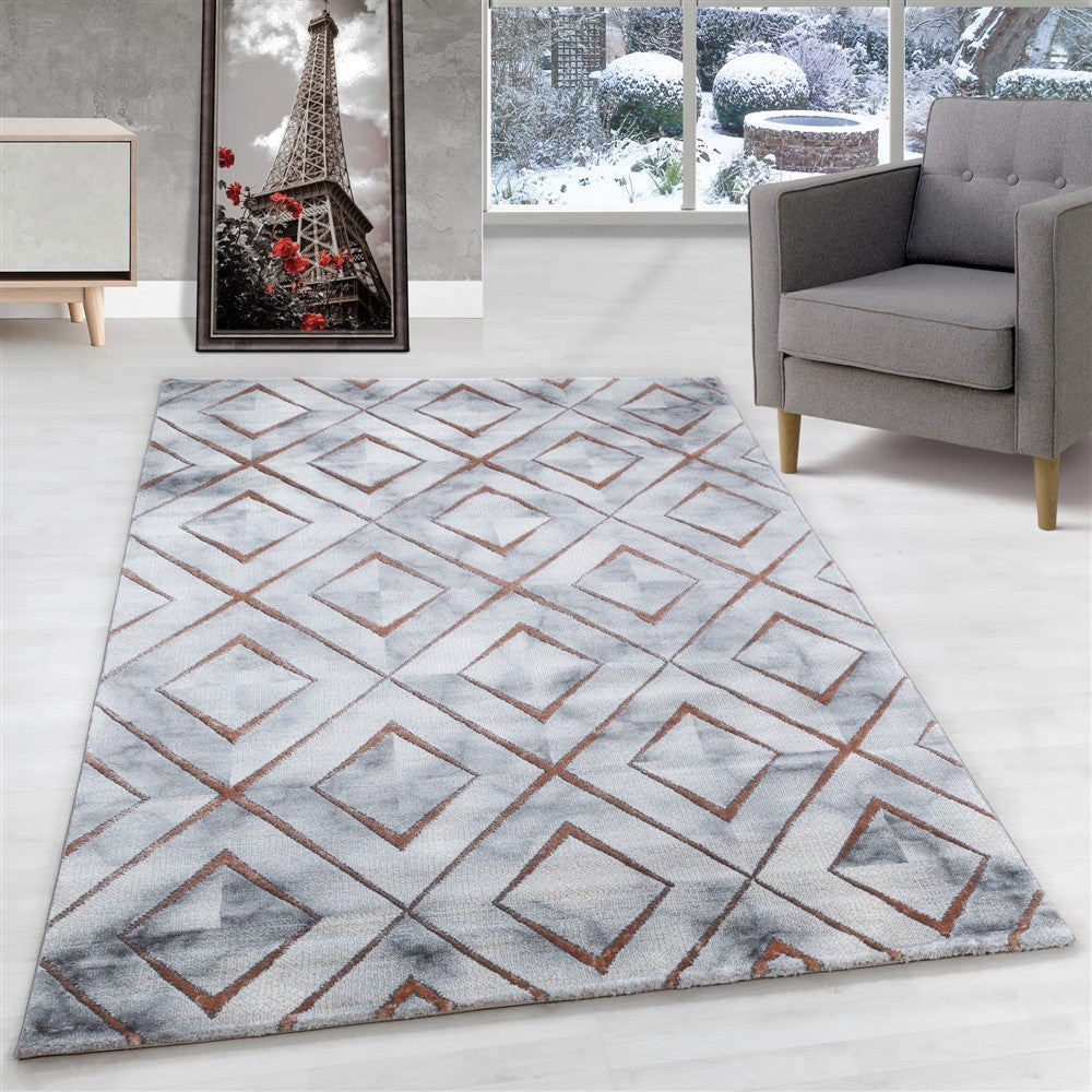 Wohnzimmerteppich Kurzflor Teppich Design Marmoriert Raute Karo Bronze