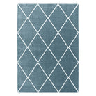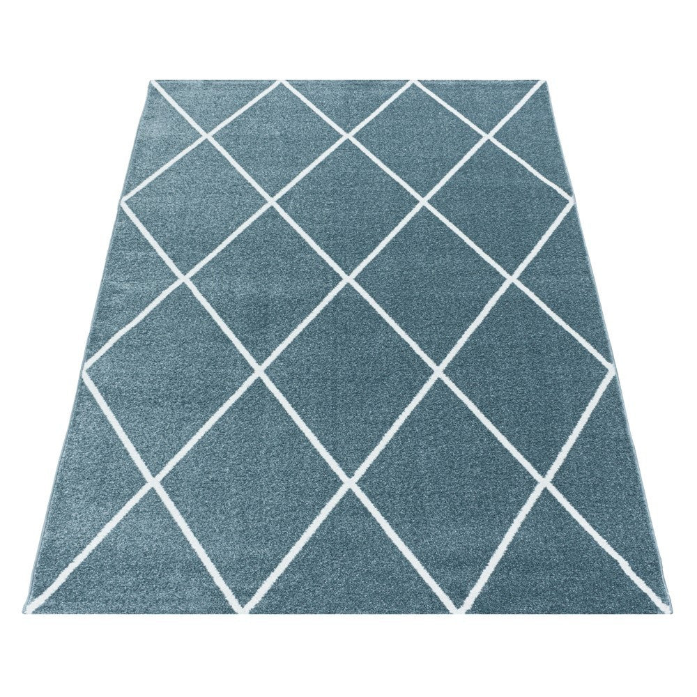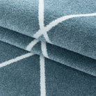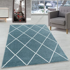 Wohnzimmerteppich Kurzflor Teppich Design Raute Linien Unifarben Blau