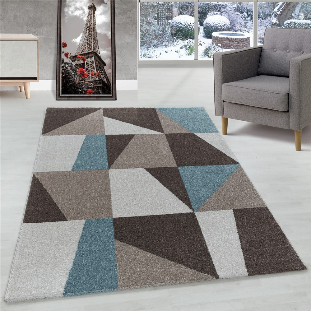 Wohnzimmerteppich Kurzflor Teppich Design Zipcode Dreieck Trapez Blau