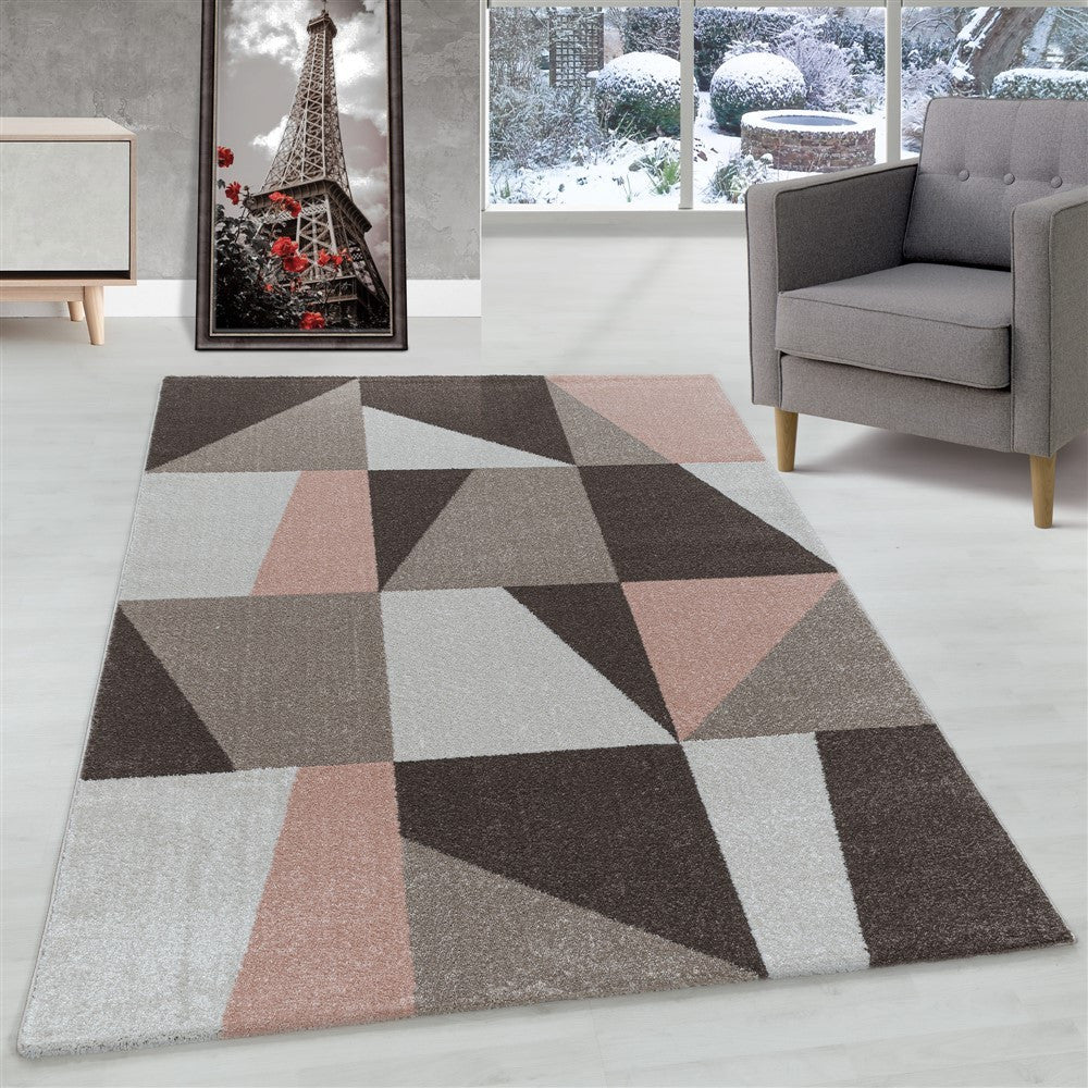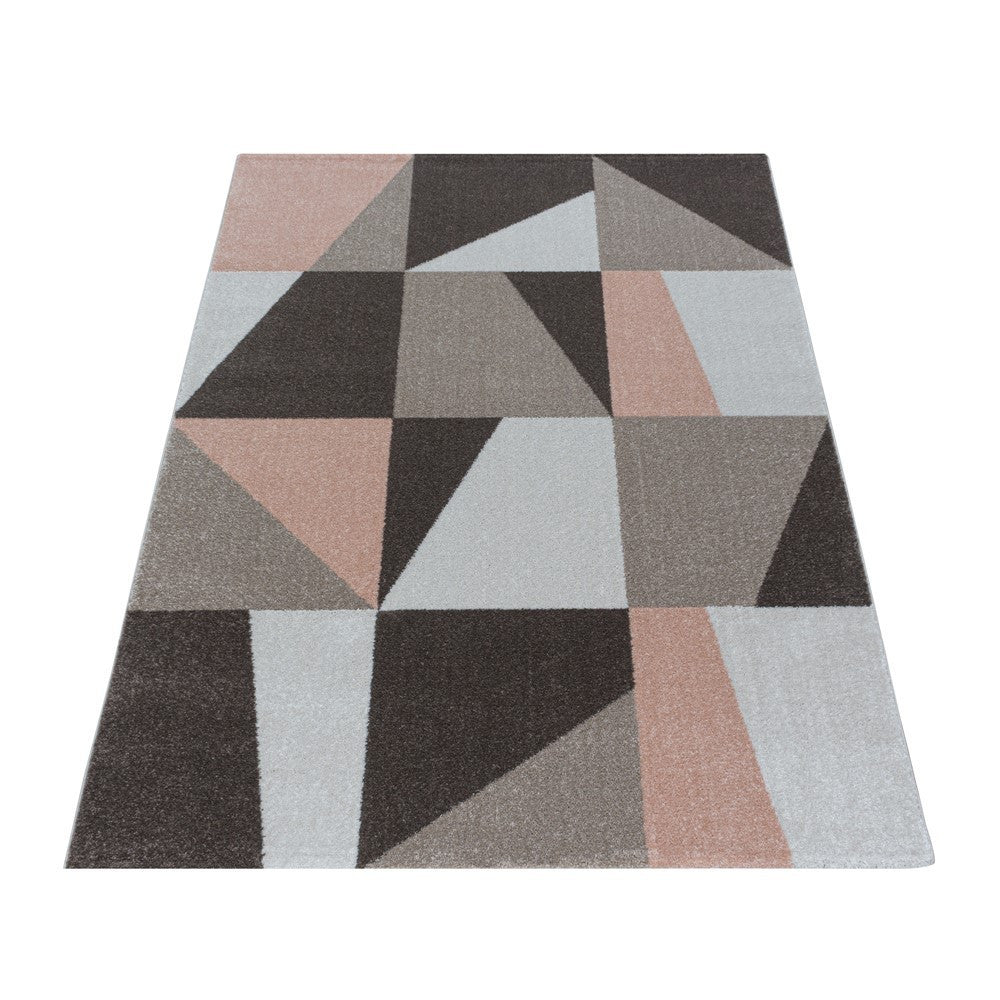 Wohnzimmerteppich Kurzflor Teppich Design Zipcode Dreieck Trapez Rose