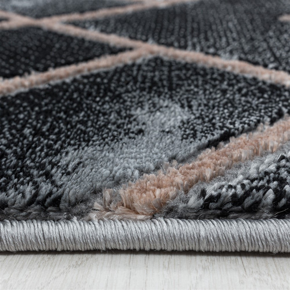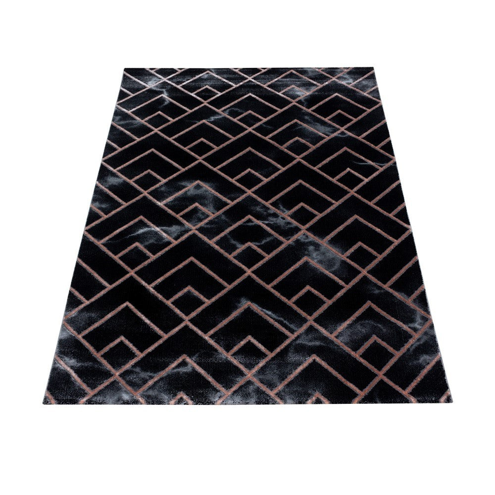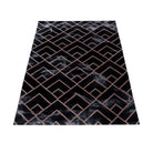 Wohnzimmerteppich Kurzflor Teppich Dunkel Marmoriert Linien Karo Bronze