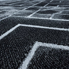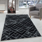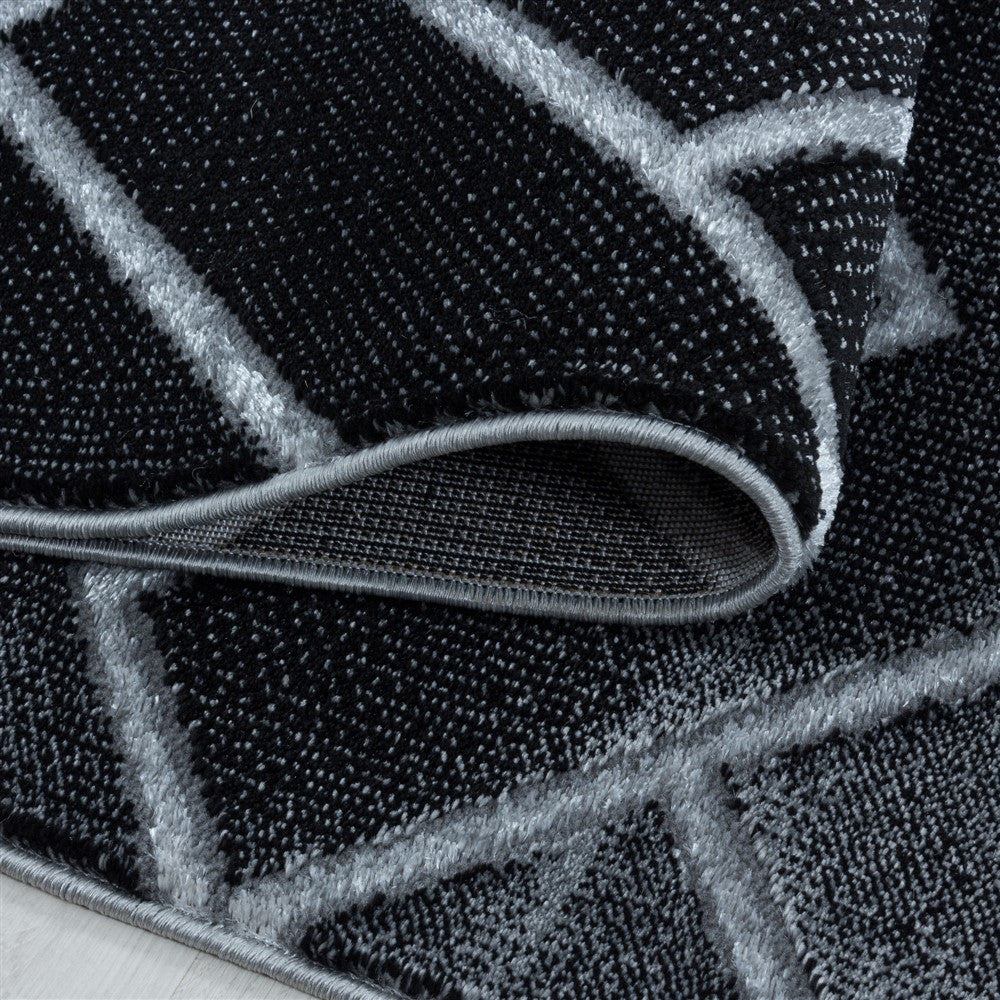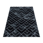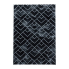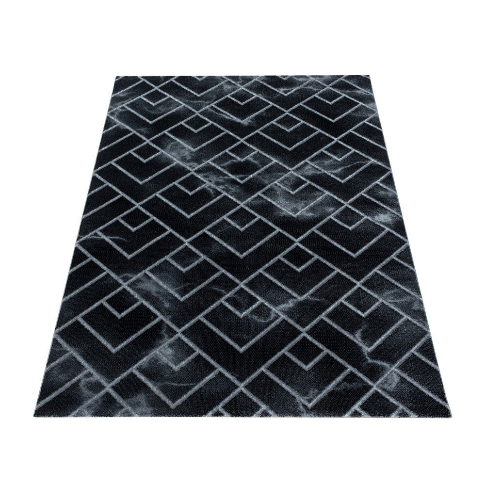 Wohnzimmerteppich Kurzflor Teppich Dunkel Marmoriert Linien Karo Silber