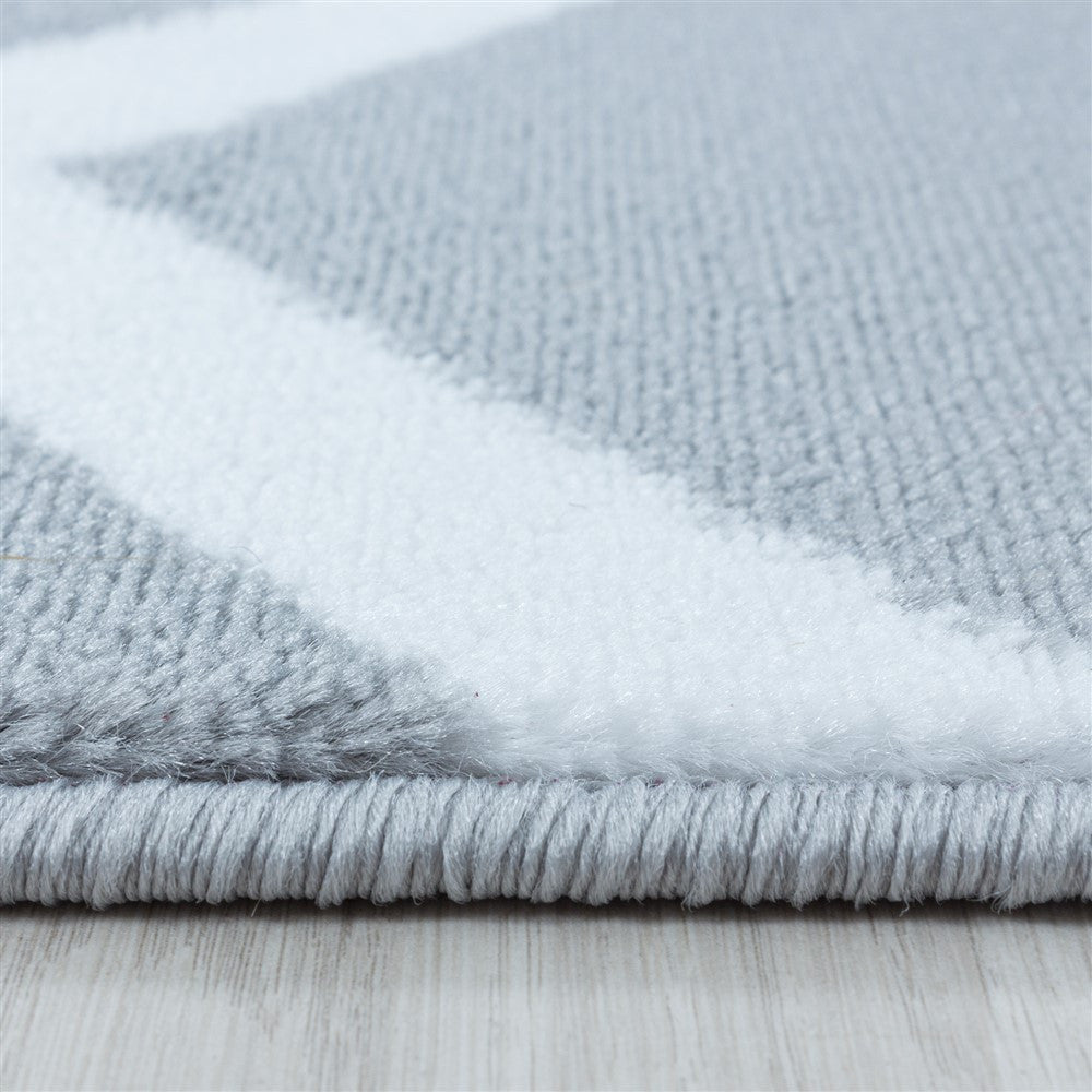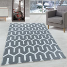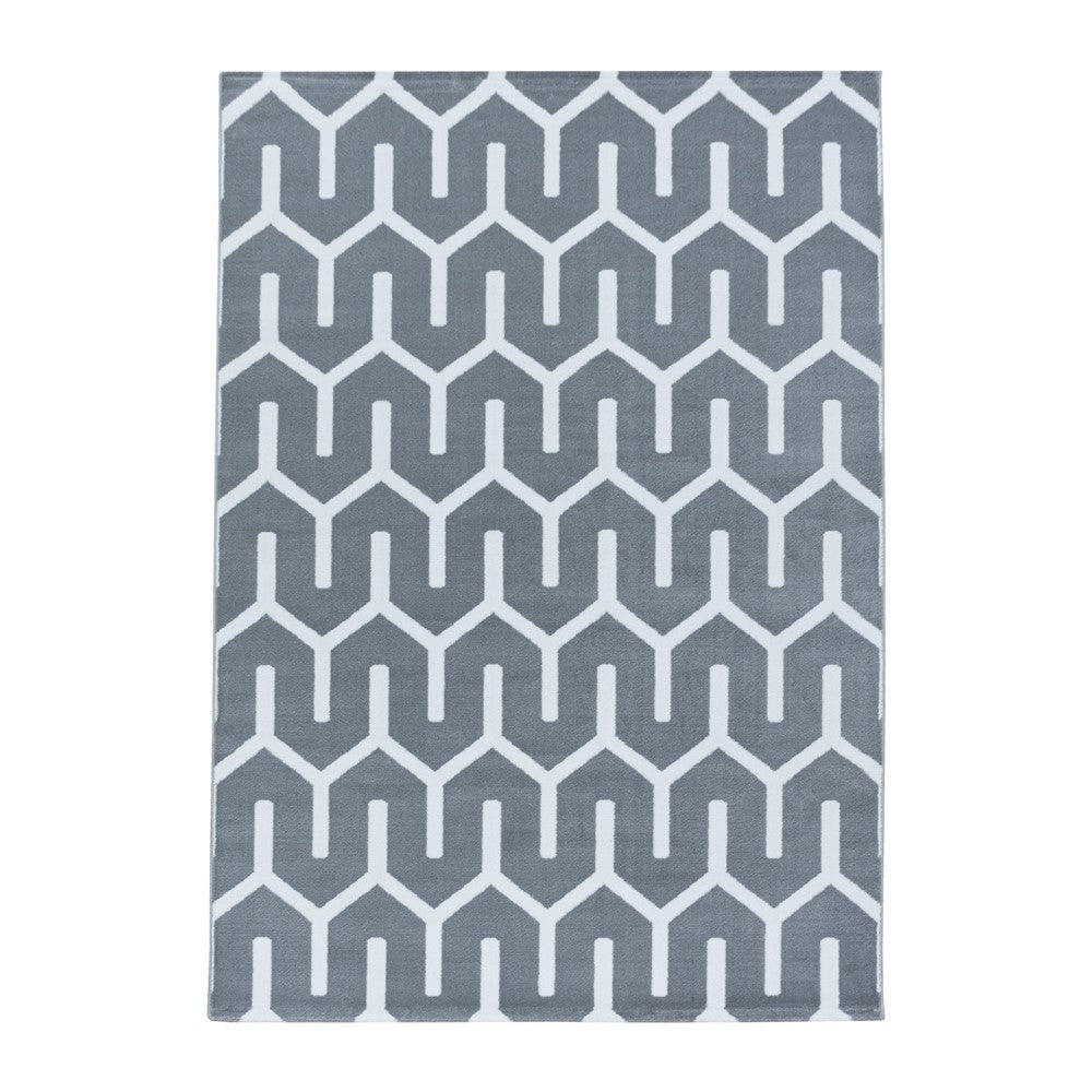 Wohnzimmerteppich Kurzflor Teppich Gitter Design Soft Flor Grau