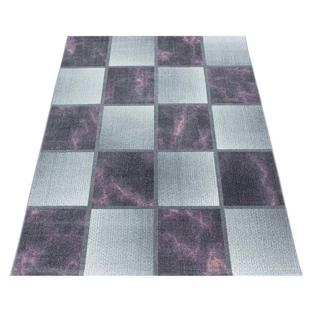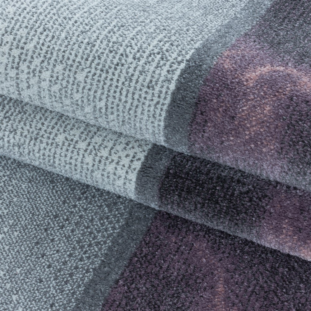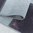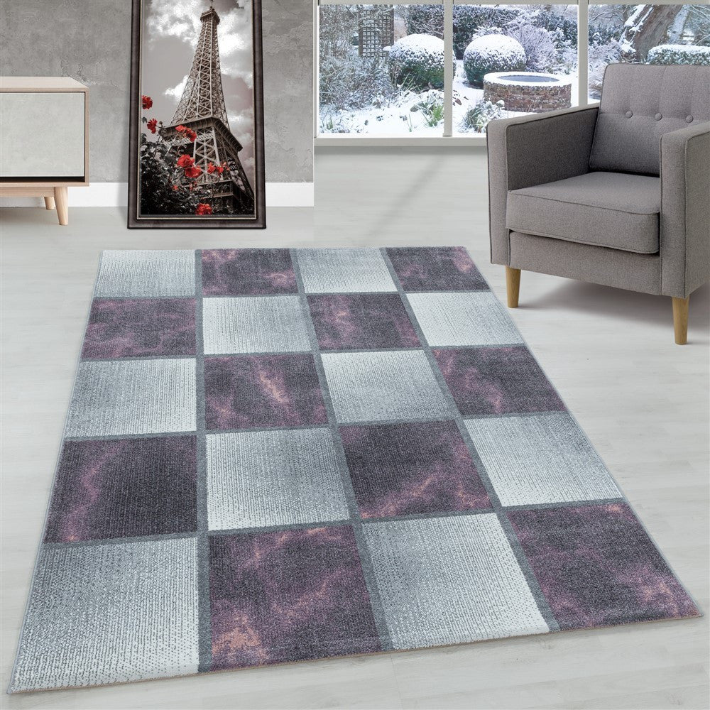 Wohnzimmerteppich Kurzflor Teppich Lila Grau Quadrat Muster Marmoriert Weich