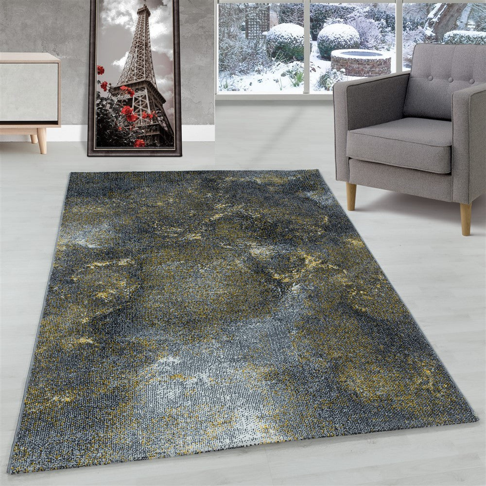 Wohnzimmerteppich Kurzflor Teppich Wolken Muster Marmoriert Weich Gelb