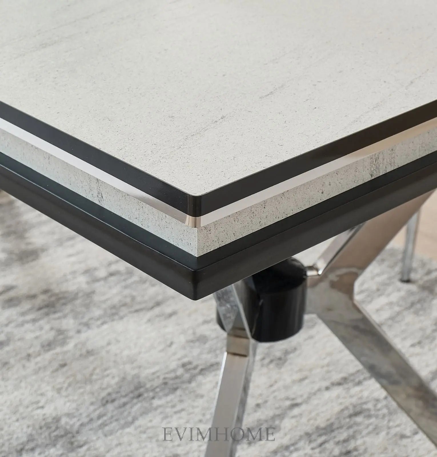 Das BERFU Esstisch-Set kombiniert modernes Design mit stabiler Verarbeitung und verleiht jedem Esszimmer eine elegante Atmosphäre. Mit seiner edlen Lackierung, klaren Linien und hochwertigen Chrom-Elementen ist es die perfekte Wahl für stilbewusste Haushalte.