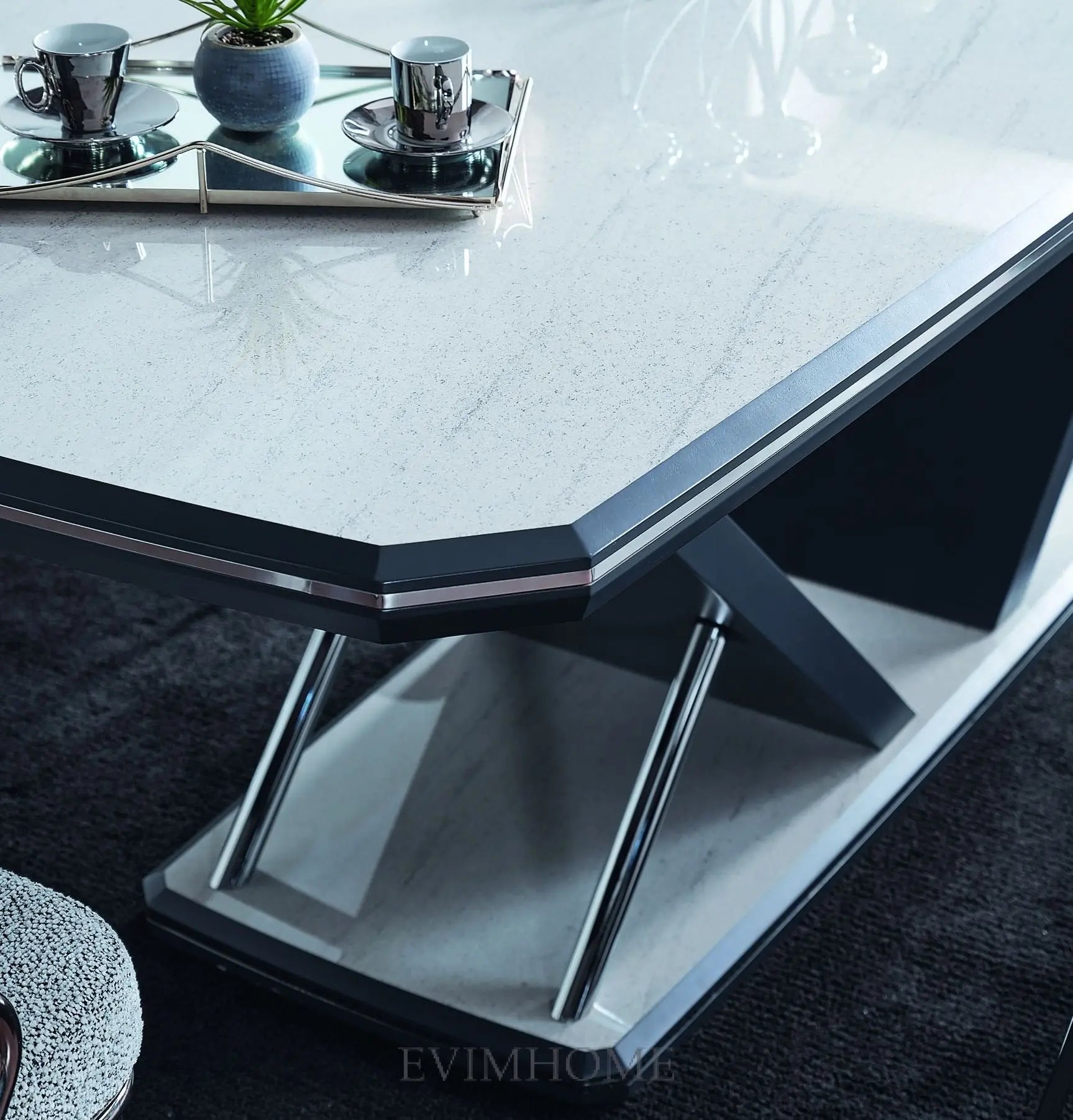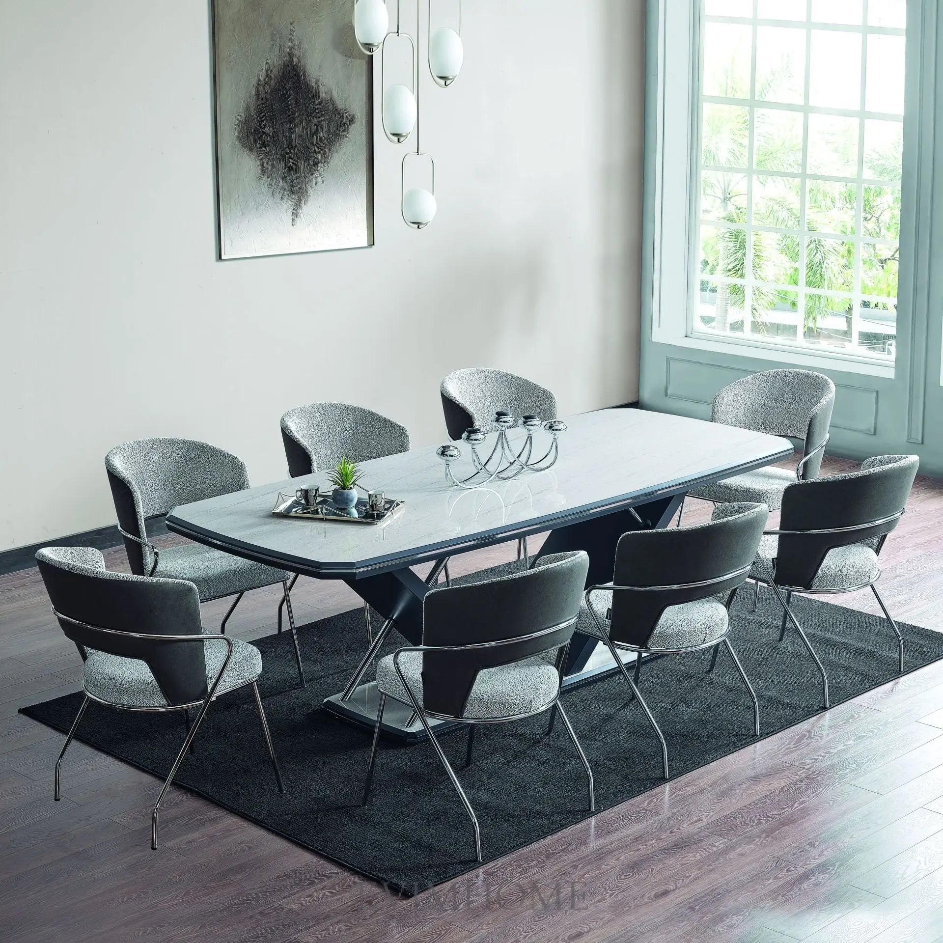 Für ein komplettes Wohnkonzept bietet das 6-teilige ELIF Chrom-Set die ideale Lösung: ein stilvoller Esstisch kombiniert mit fünf bequemen Stühlen, die zusammen ein harmonisches Gesamtbild ergeben. Dieses Set ist nicht nur praktisch, sondern auch ein echter Blickfang – ob für das tägliche Familienessen, gesellige Abende mit Freunden oder festliche Anlässe.