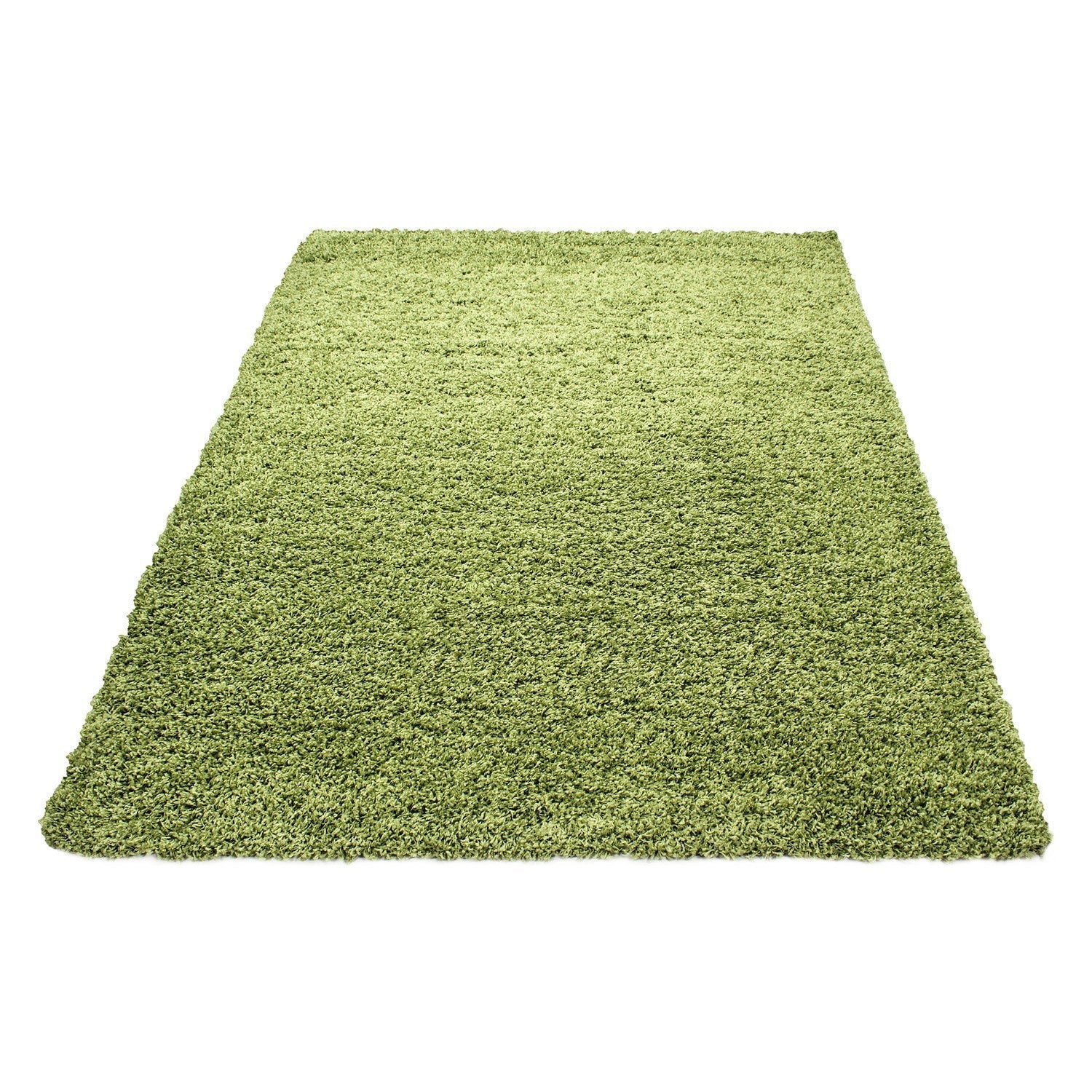 Hochflor Langflor Wohnzimmer DREAM Shaggy Teppich Unifarbe Florhöhe 5cm Grün