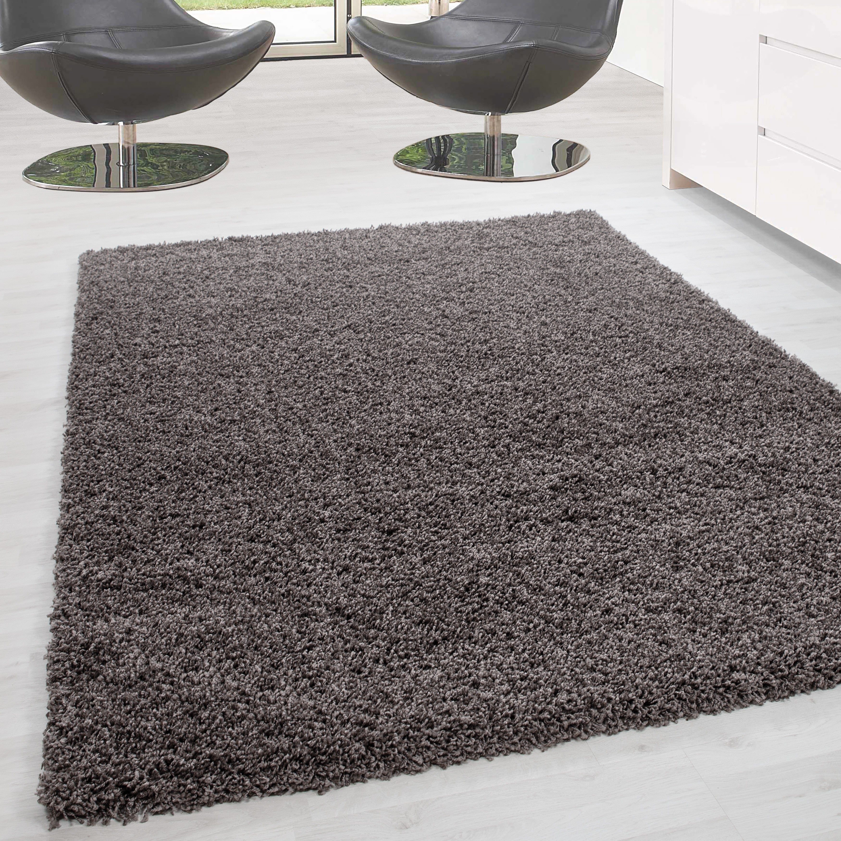 Hochflor Langflor Wohnzimmer DREAM Shaggy Teppich Unifarbe Florhöhe 5cm Taupe