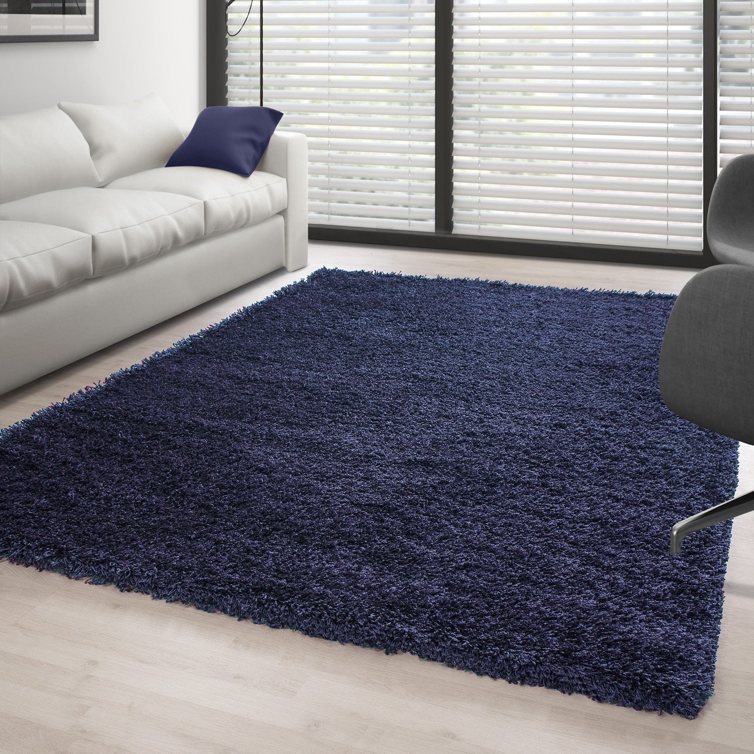 Hochflor Langflor Wohnzimmer Shaggy Teppich Florhöhe 3cm unifarbe Navy