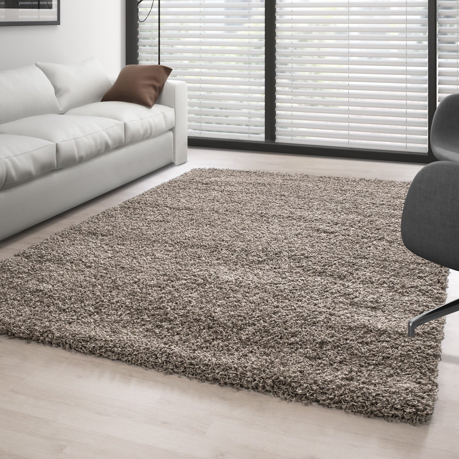 Hochflor Langflor Wohnzimmer Shaggy Teppich Florhöhe 3cm unifarbe Taupe