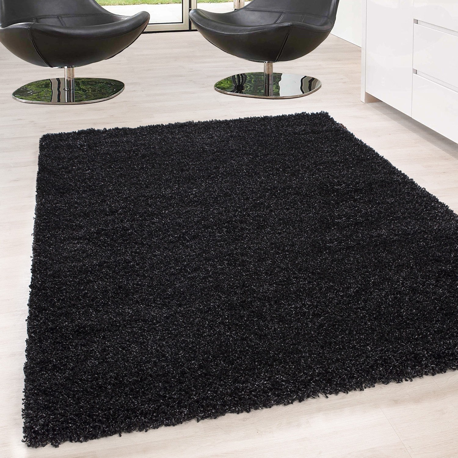 Hochflor Langflor Wohnzimmer Shaggy Teppich Unifarbe Florhöhe 5cm Anthrazit