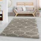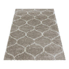 Wohnzimmerteppich Design Hochflor Teppich Muster Kachel Tile Jacquard Beige