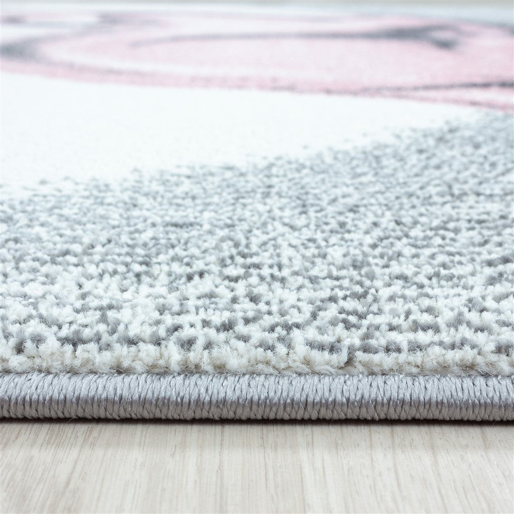 Kinderteppich Baby Teppich Kinderzimmer süßer Rehkitz Motiv Grau Pink Weiß