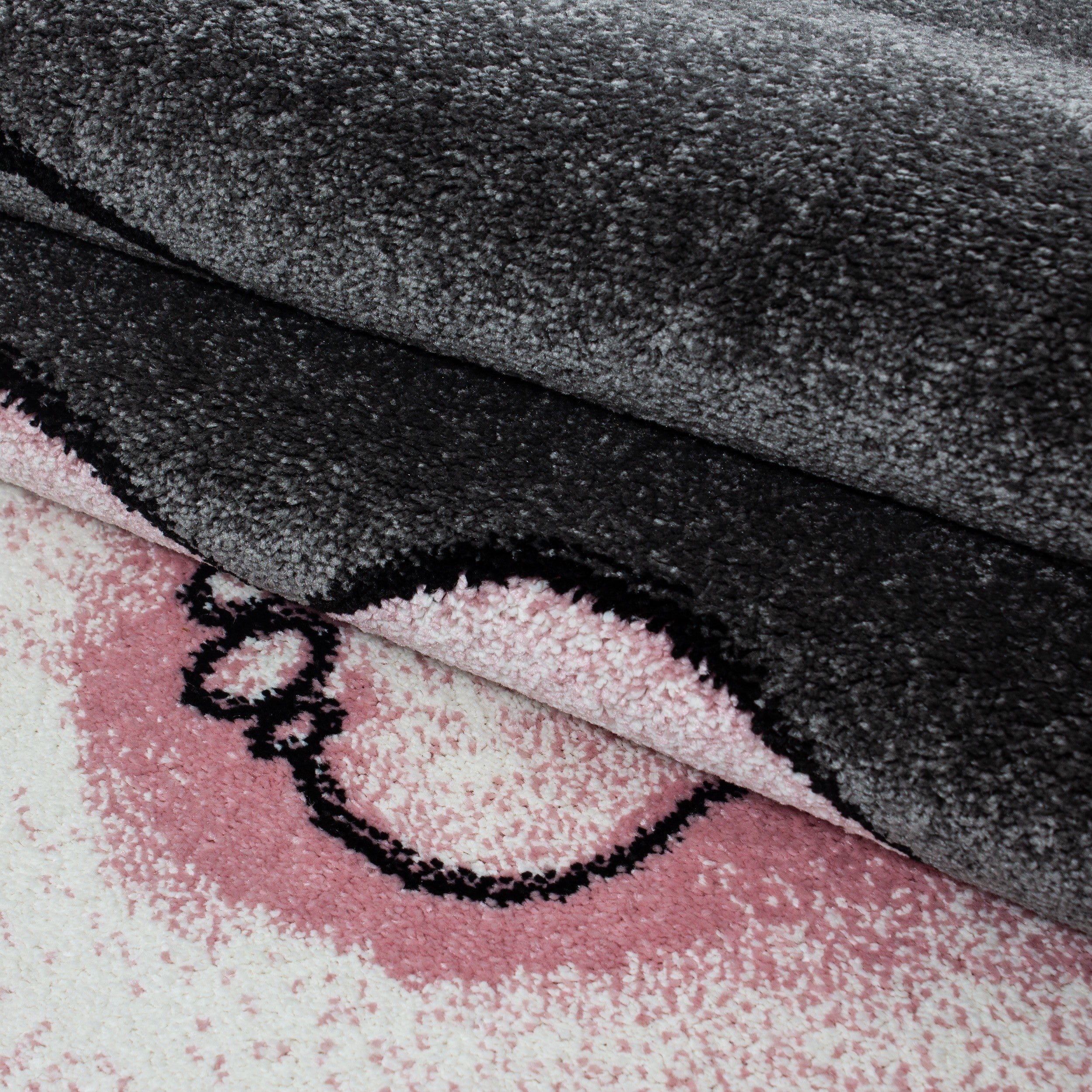 Kinderteppich Kinderzimmer Teppich niedlicher Elefantenbaby Stern Grau-Weiß-Pink