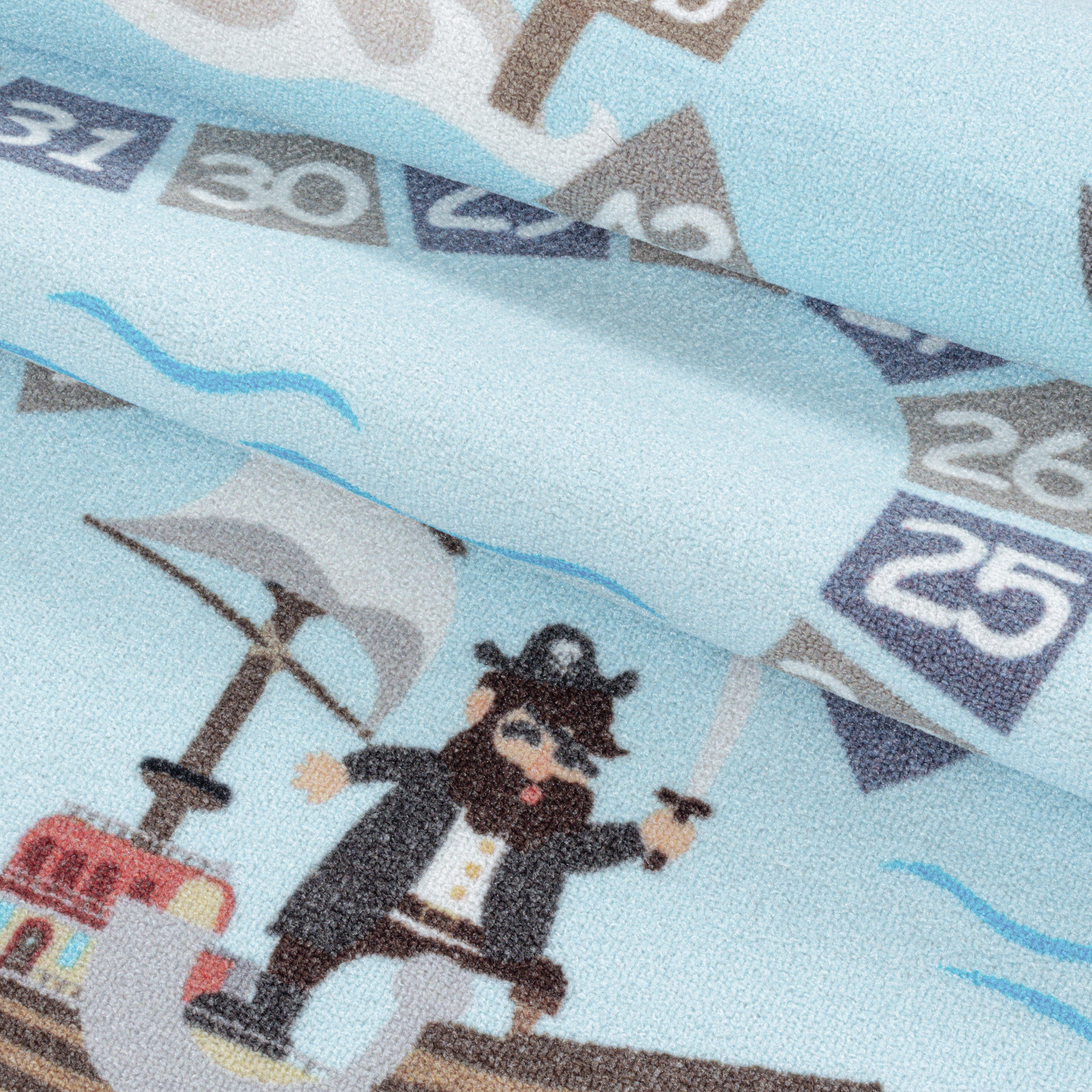 Kurzflor Kinderteppich Spielteppich Kinderzimmer Teppich Seefahrt Piraten Blau