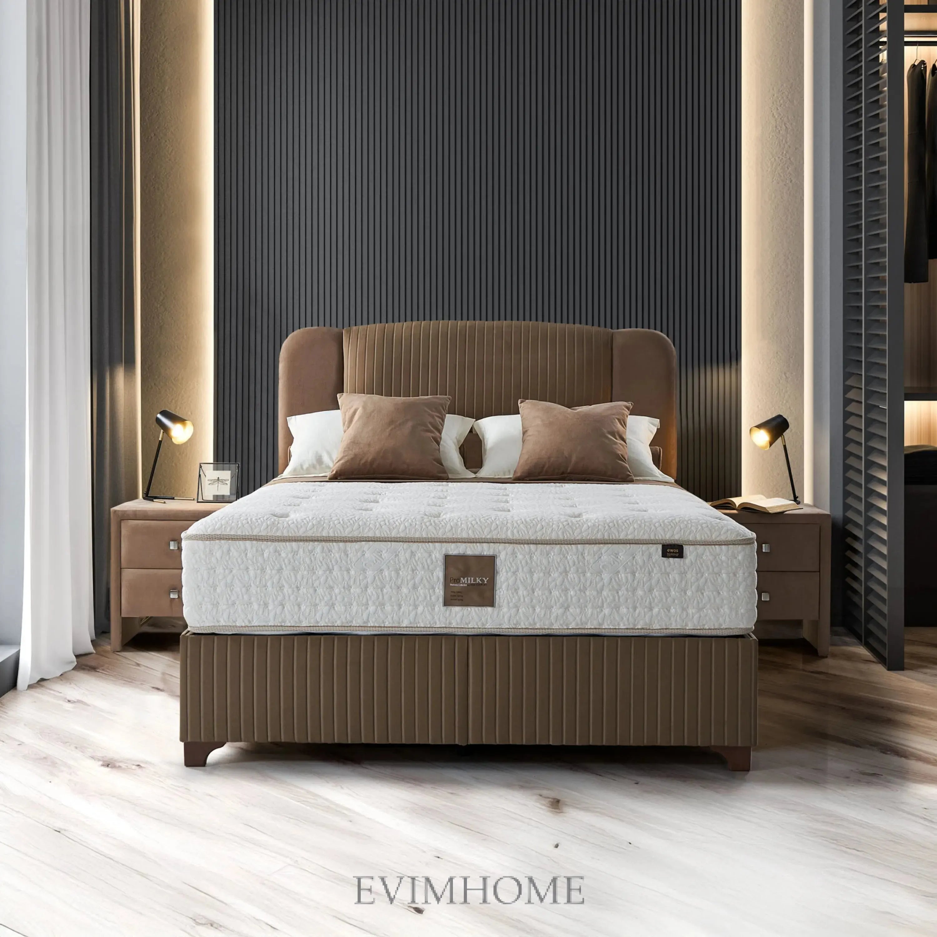 ProMilky Sandra Boxspringbett Set inkl. Matratze – Perfekte Kombination aus Bonell- und Taschenfedern für Unterstützung, Komfort und ungestörten Schlaf