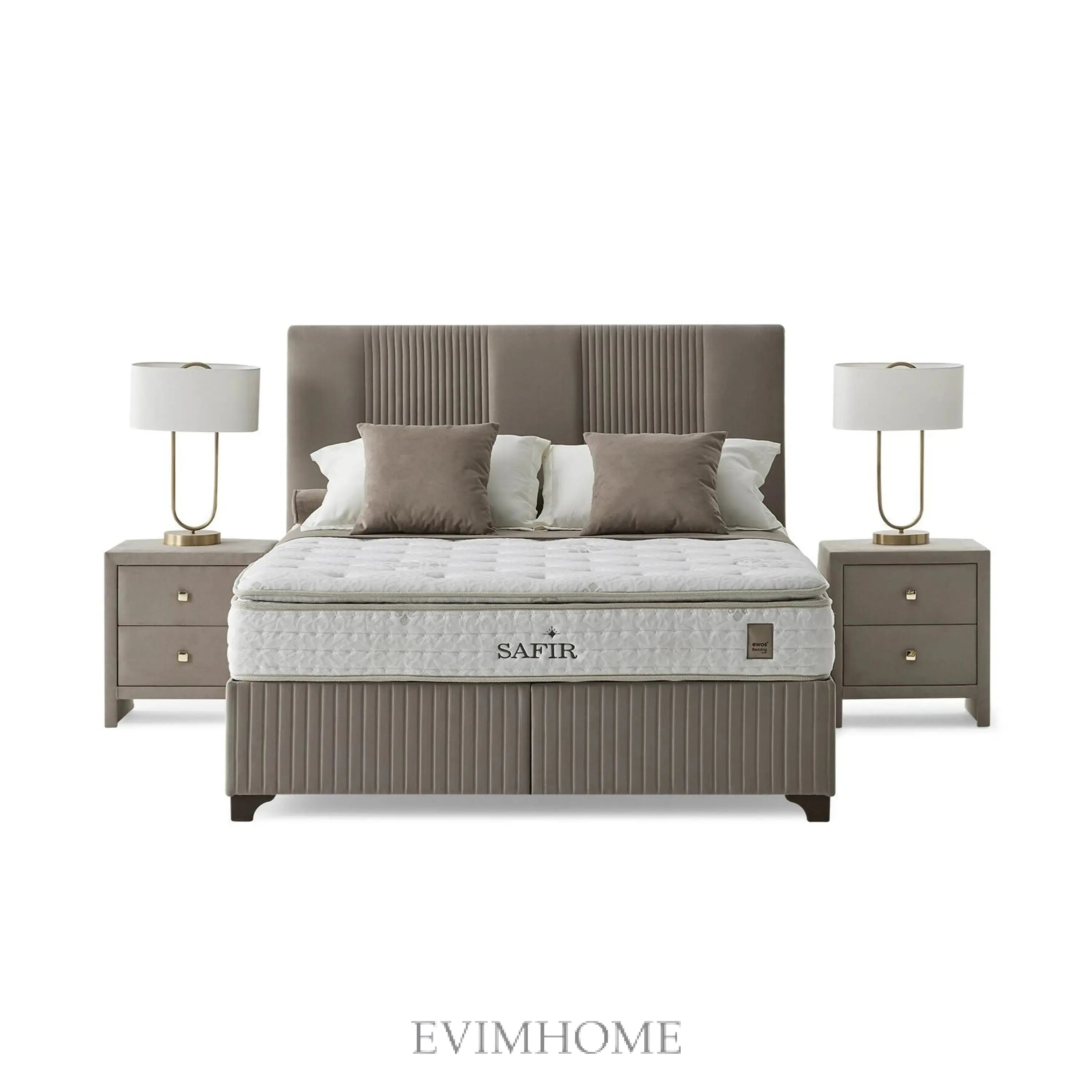 Safir Violet Boxspringbett Set inkl. Matratze – Robustes Bonell-Federsystem, Baumwolle, Schaumstoff und Thermobond-Fasern für langlebigen Komfort und Entspannung