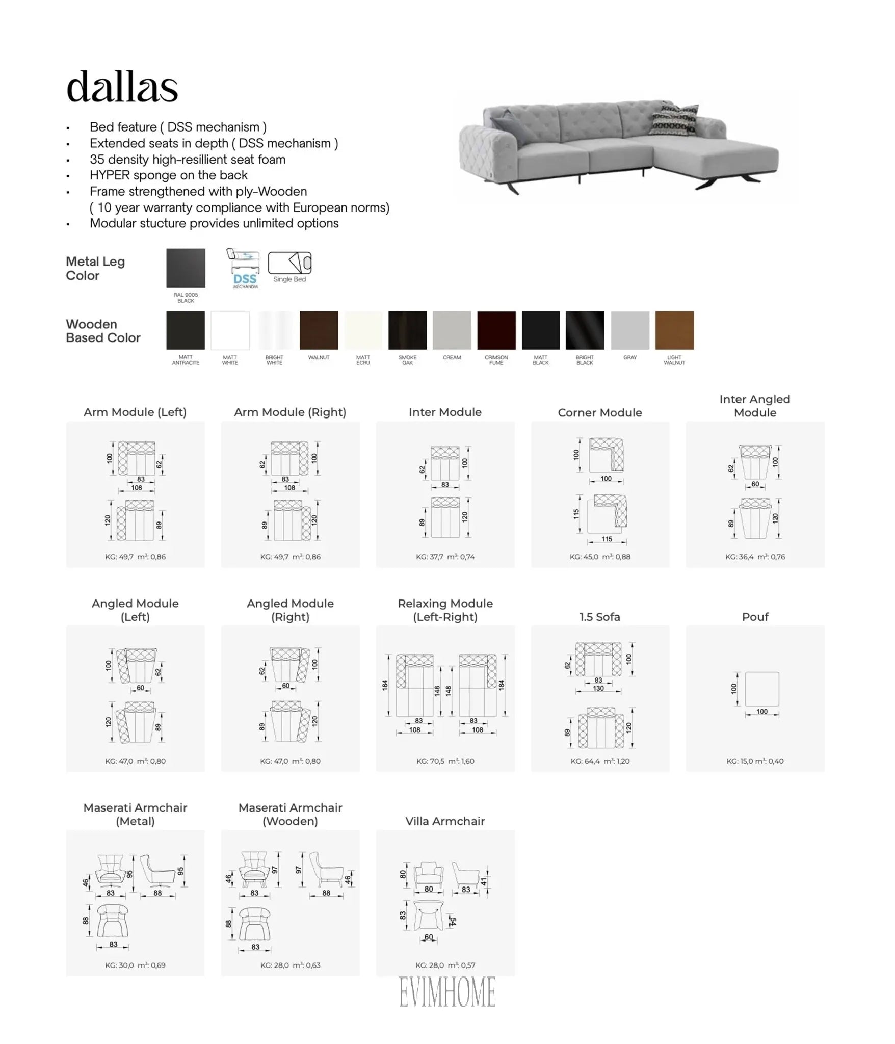 Die Dallas ist ein elegantes Sofa, das für sein modernes Design und seinen hohen Sitzkomfort bekannt ist. Es bietet Platz für zwei bis drei Personen und ist in verschiedenen Größen und Materialien, von Leder bis Stoff, in einer Vielzahl von Farben und Texturen erhältlich. Genießen Sie eine bequeme Sitzung mit der Dallas!