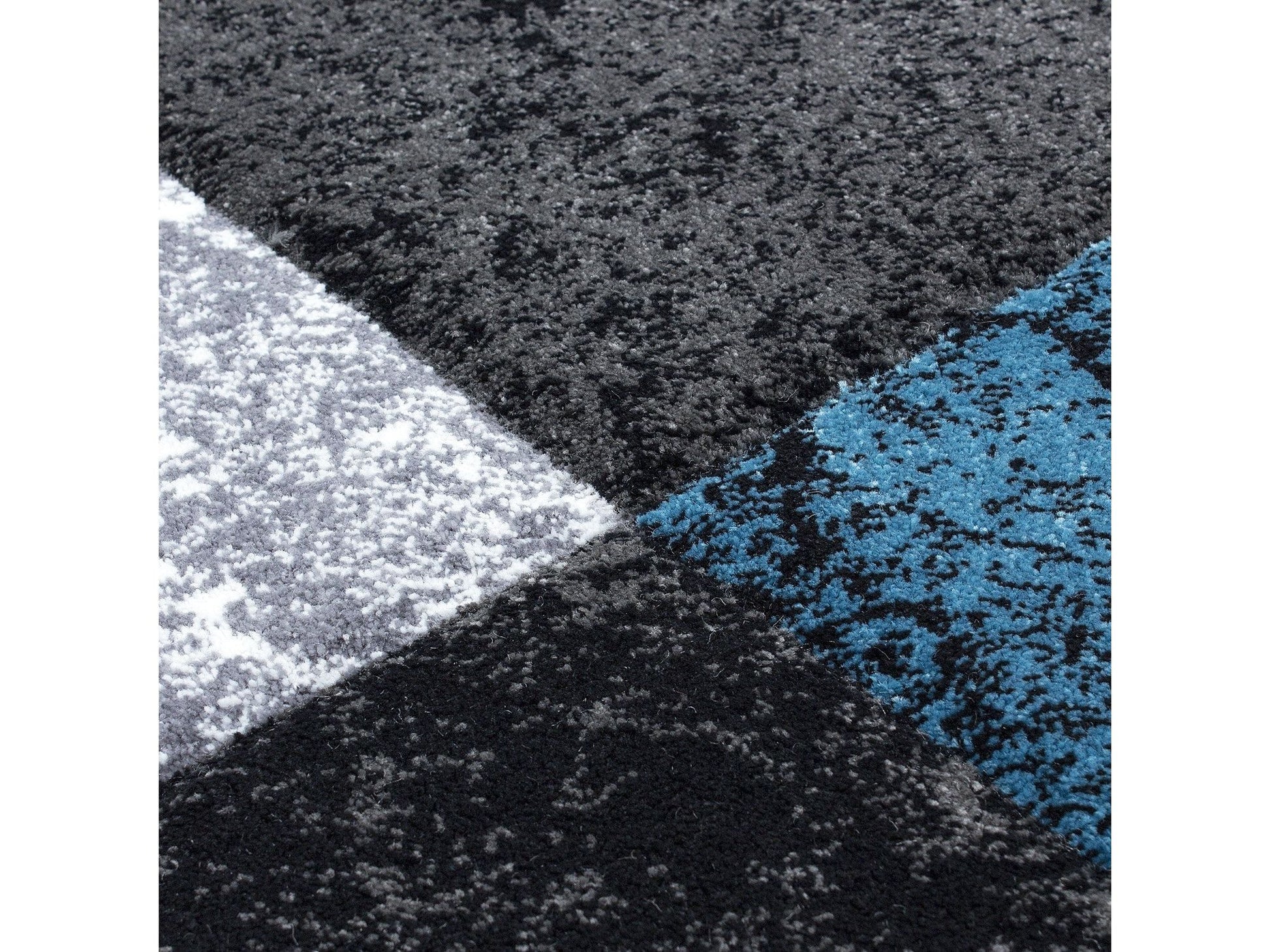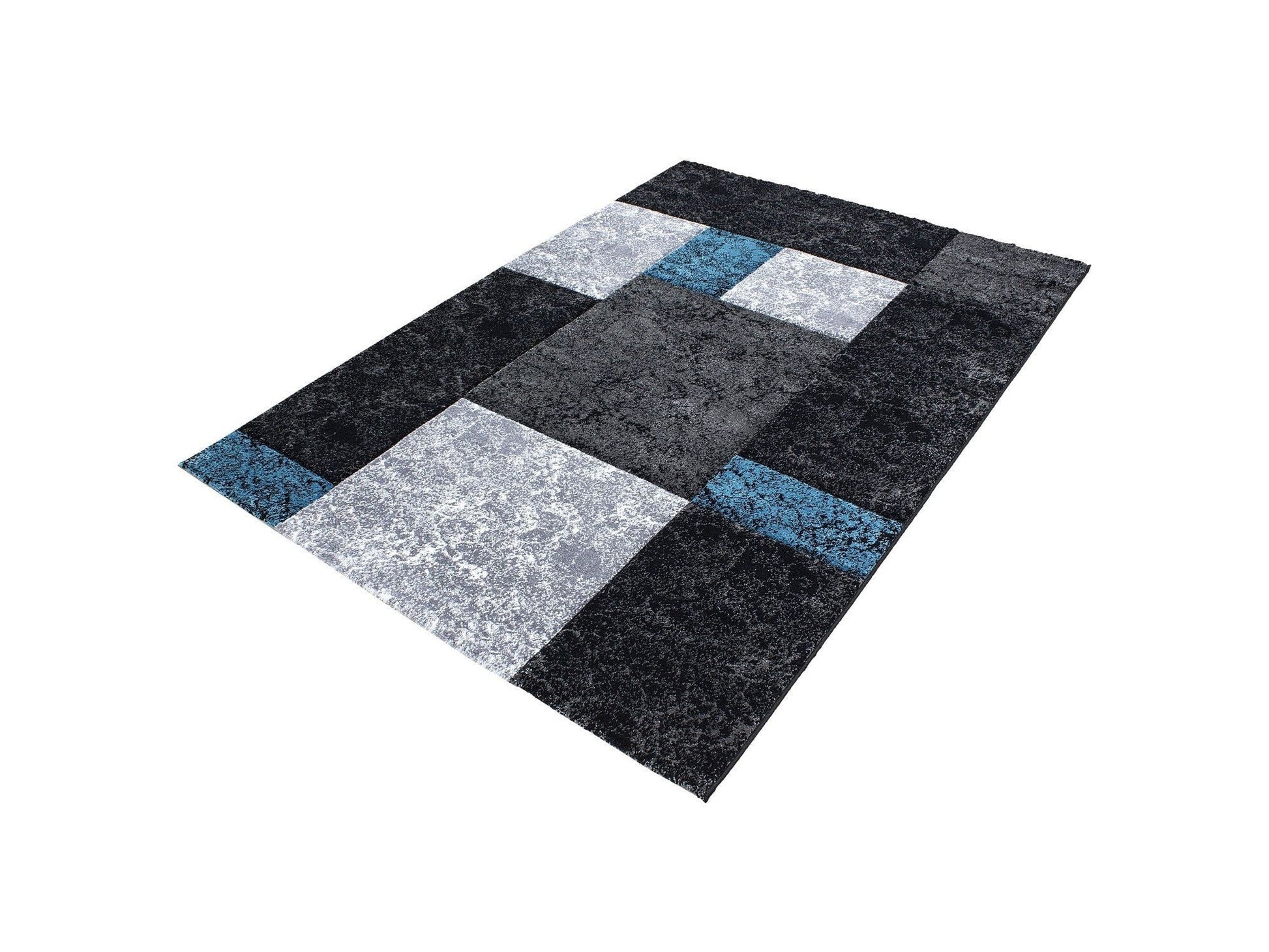 Designer Teppich Modern Kariert Muster Konturenschnitt Schwarz Grau Turkis
