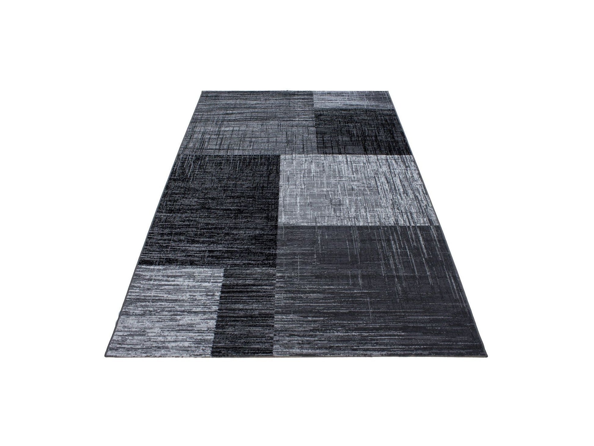 Designer Teppich Modern Kariert Muster Kurzflor Meliert Schwarz Grau Weiss