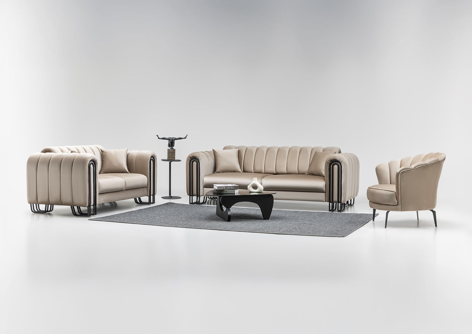Die Glorya Sofa Serie verkörpert luxuriöses Design, hohen Sitzkomfort und stilvolle Handwerkskunst. Mit ihren charakteristischen Rundungen, der sanft gepolsterten Oberfläche und den feinen Details wird sie zum zentralen Blickfang in jedem Wohnraum.