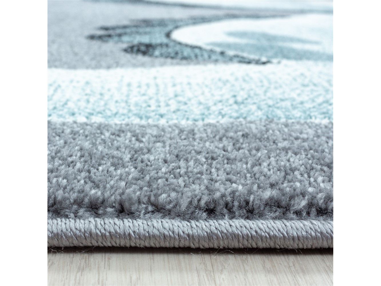 Kinderteppich Baby Teppich Kinderzimmer süßer Dino Motiv Grau Blau Weiß