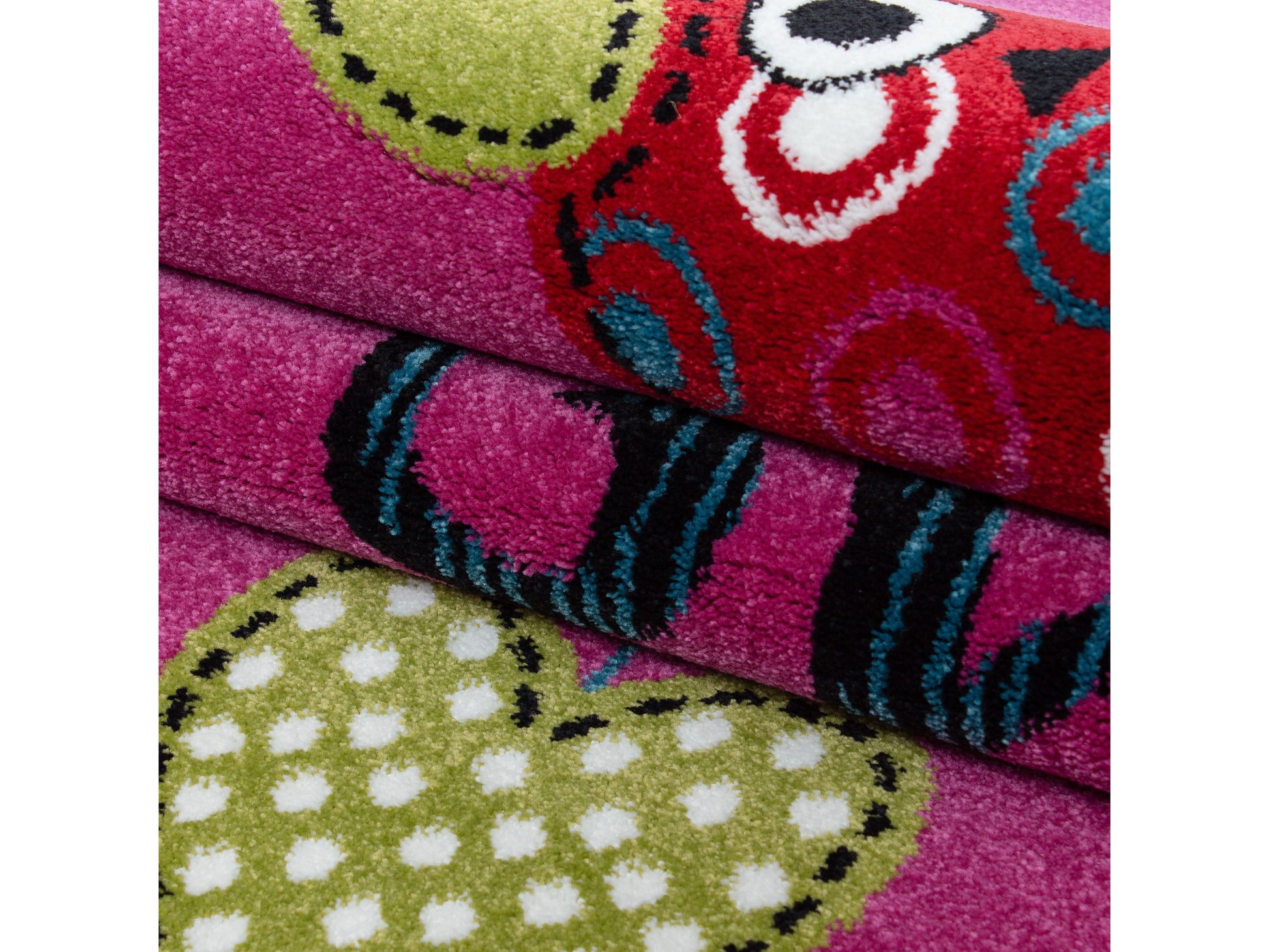 Kinderteppich Kinderzimmer Eulen Schmetterling Herz Muster Pink Gruen Blau Rot