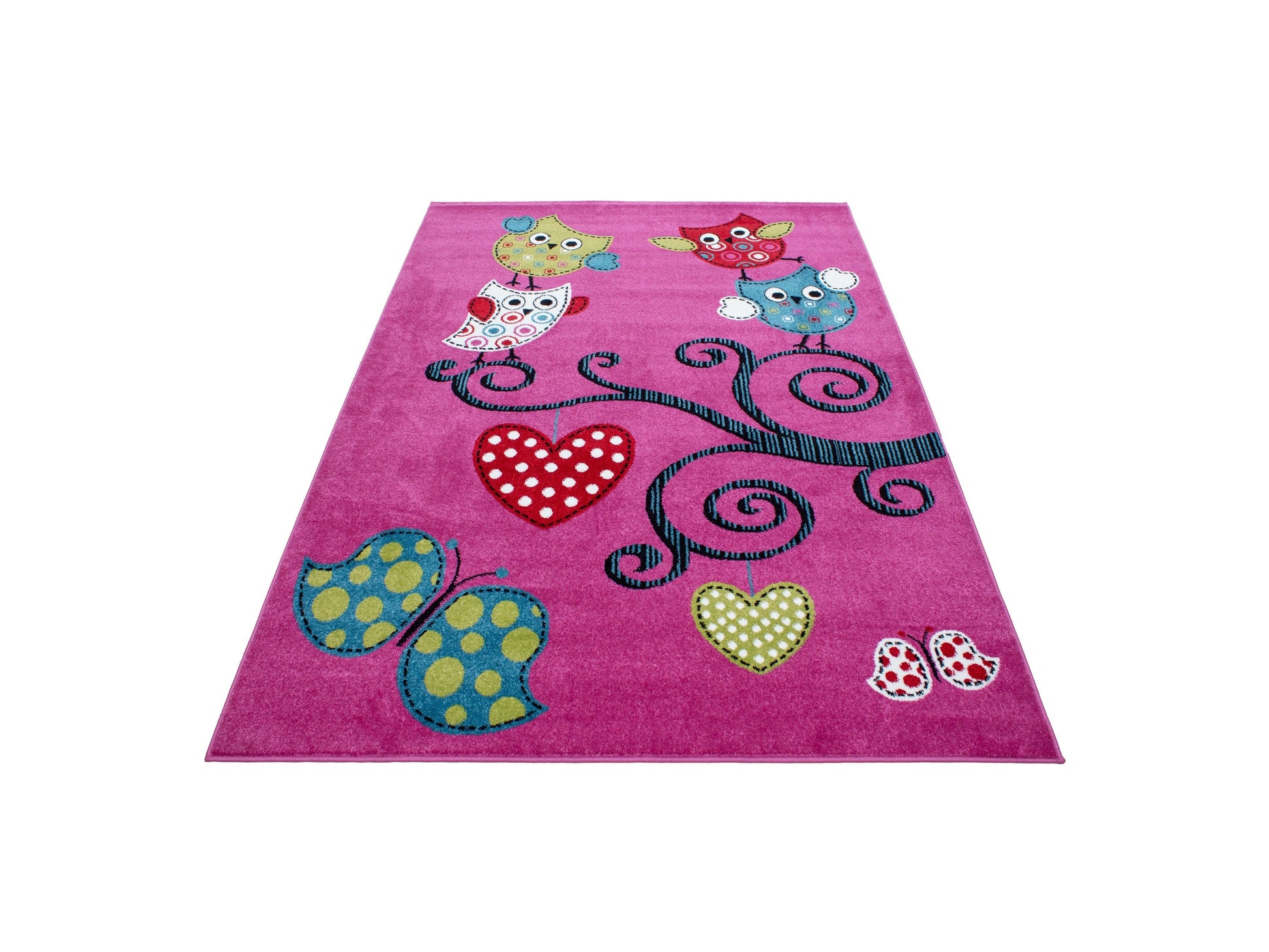 - Kinderteppich Kinderzimmer Eulen Schmetterling Herz Muster Pink Gruen Blau Rot