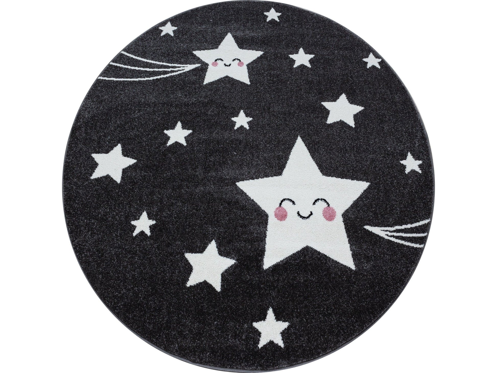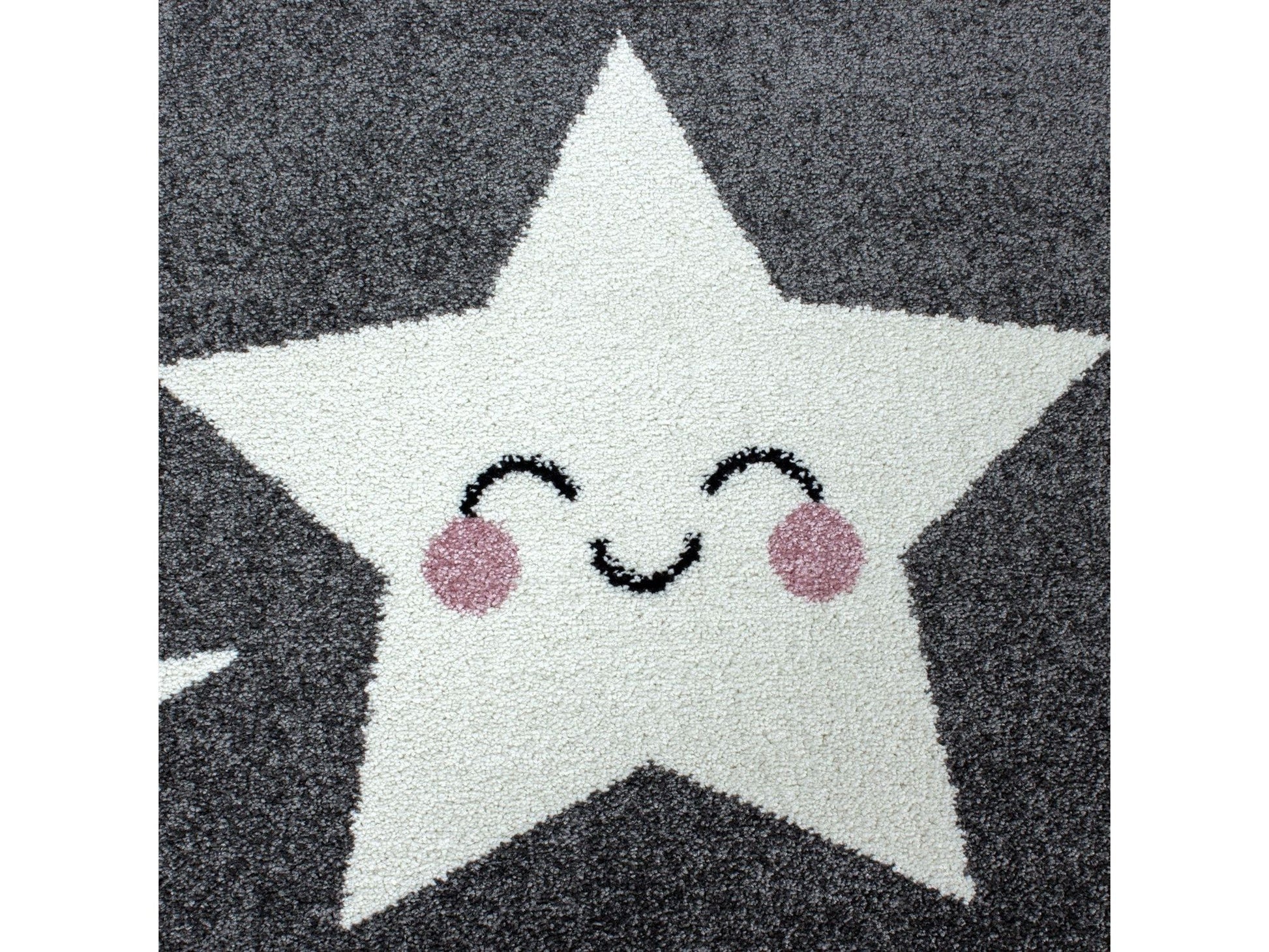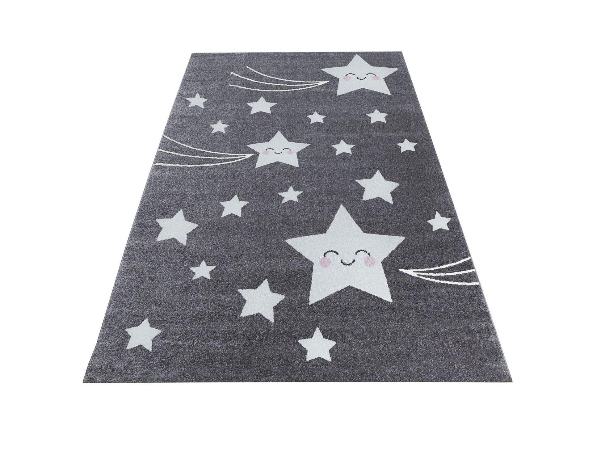 Kinderteppich Kinderzimmer Teppich Sterne Muster Grau - Weiß