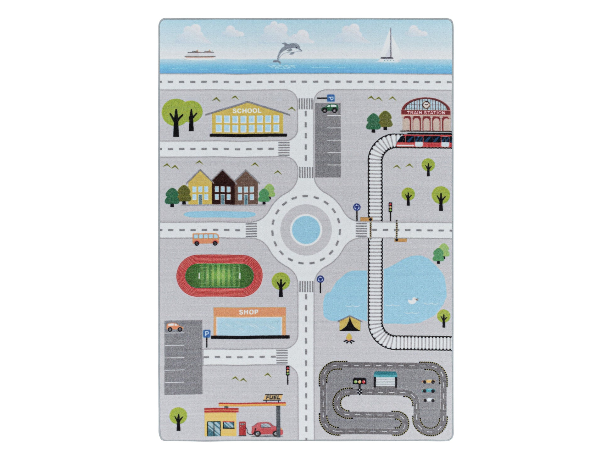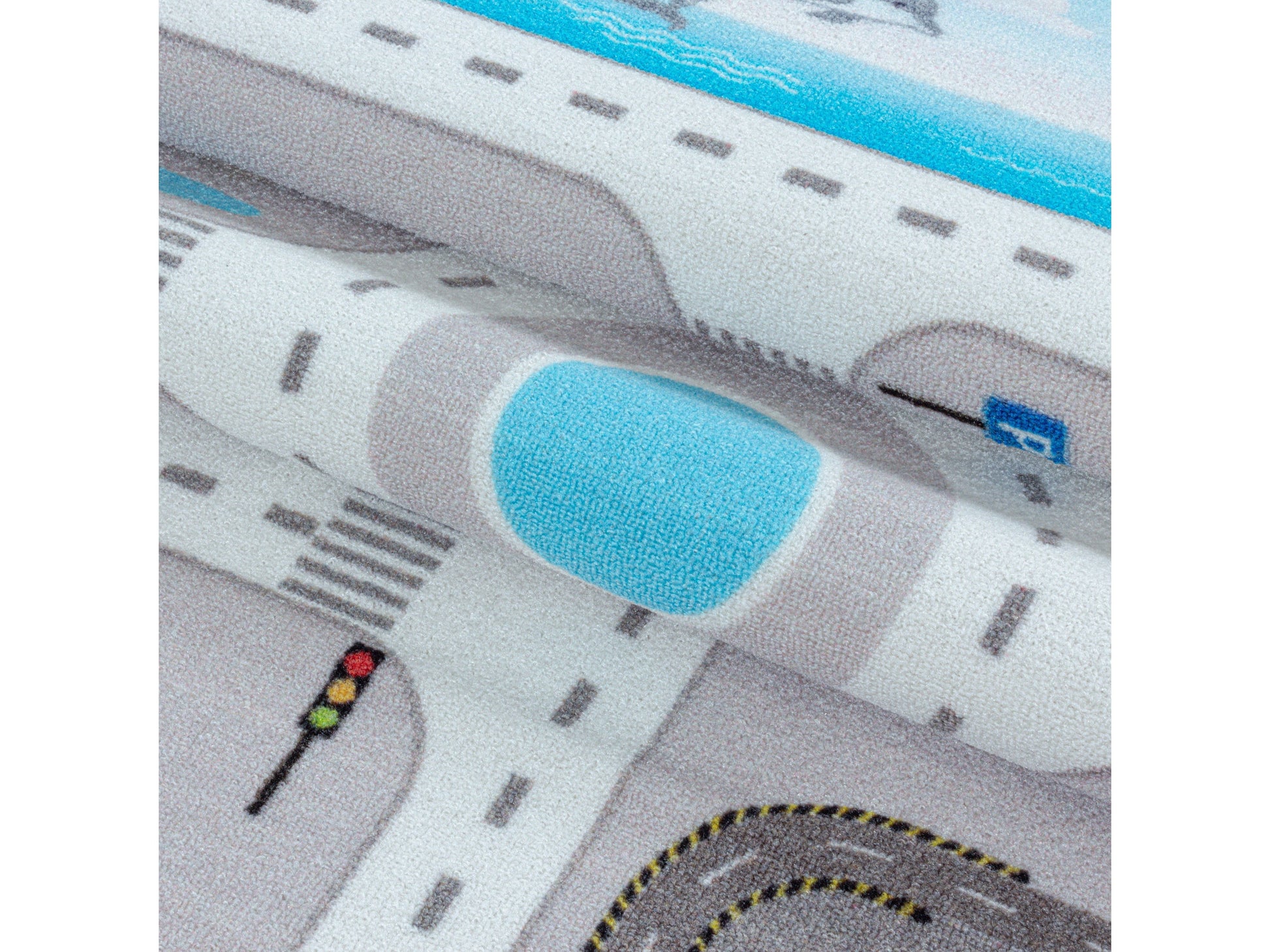 Kurzflor Kinderteppich Spielteppich Kinderzimmer Teppich Straße Verkehr Grau