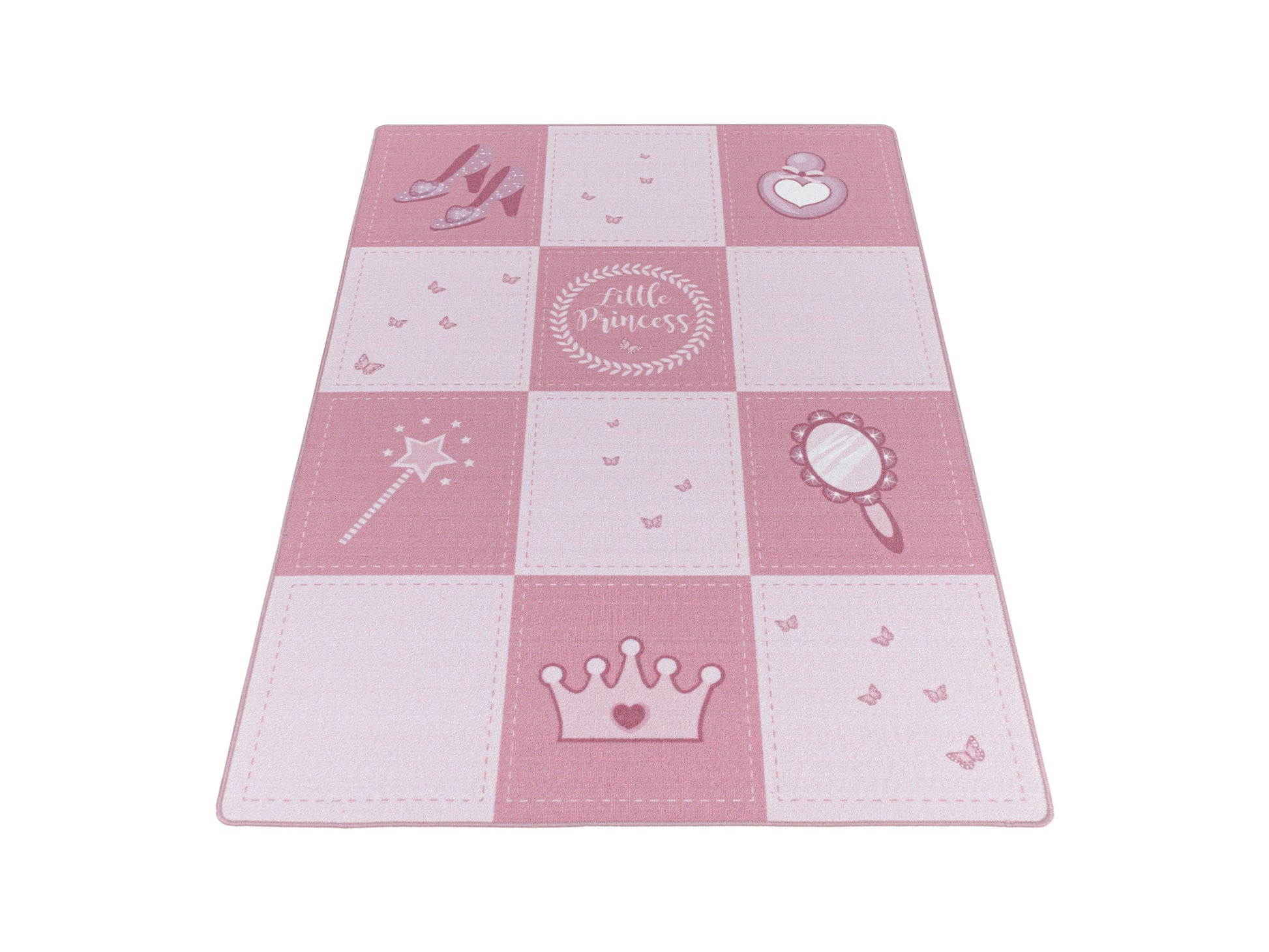 Kurzflor Kinderteppich Spielteppich Teppich Prinzessin Krone Zauberstab Pink