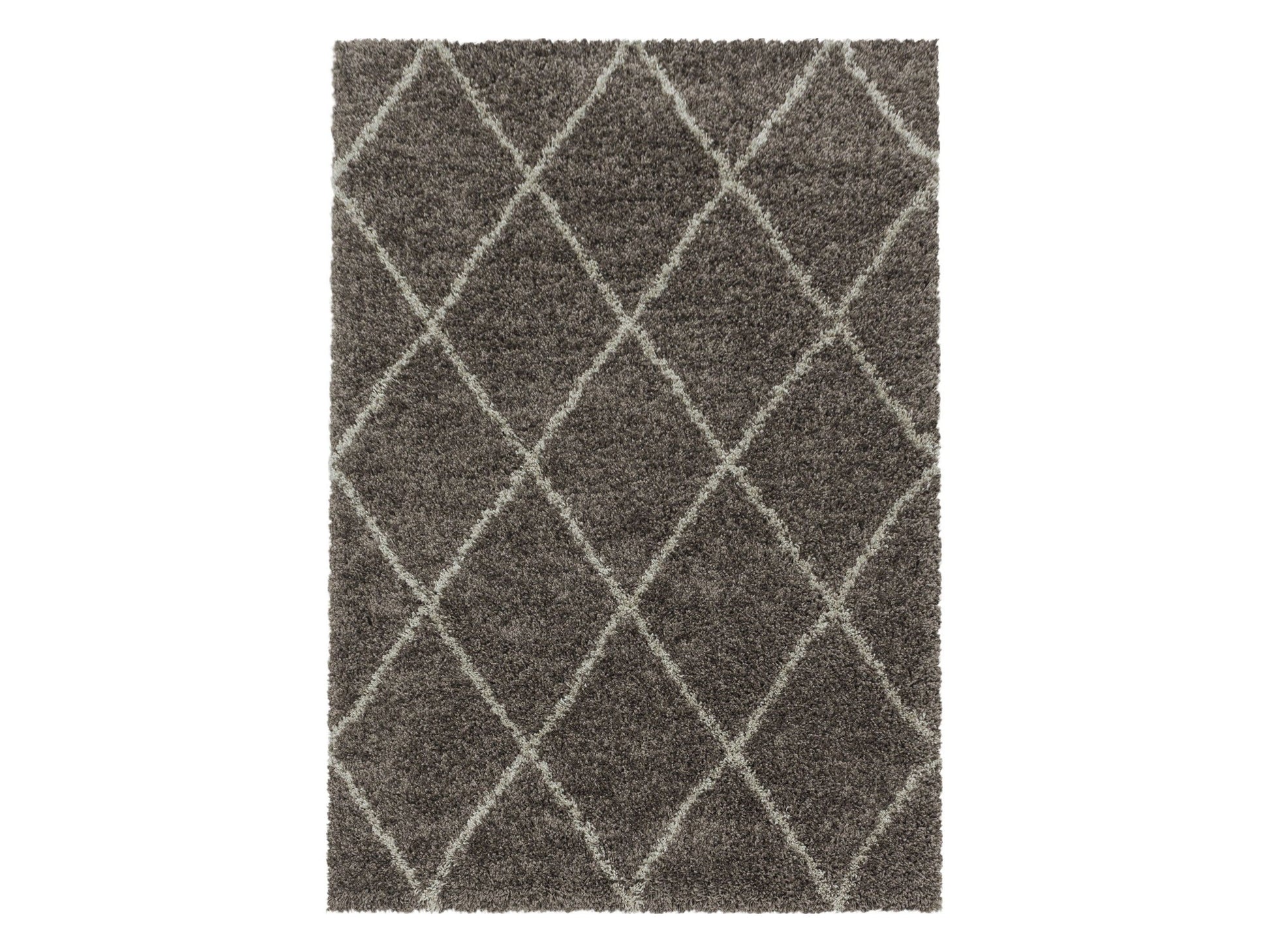 Wohnzimmerteppich Design Hochflor Teppich Muster Raute Flor Weich Farbe Taupe