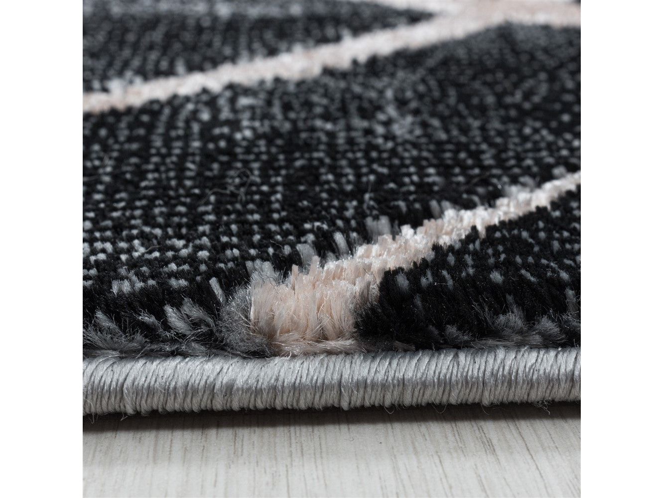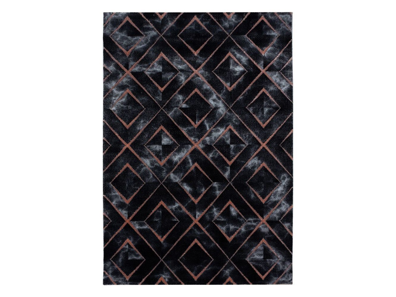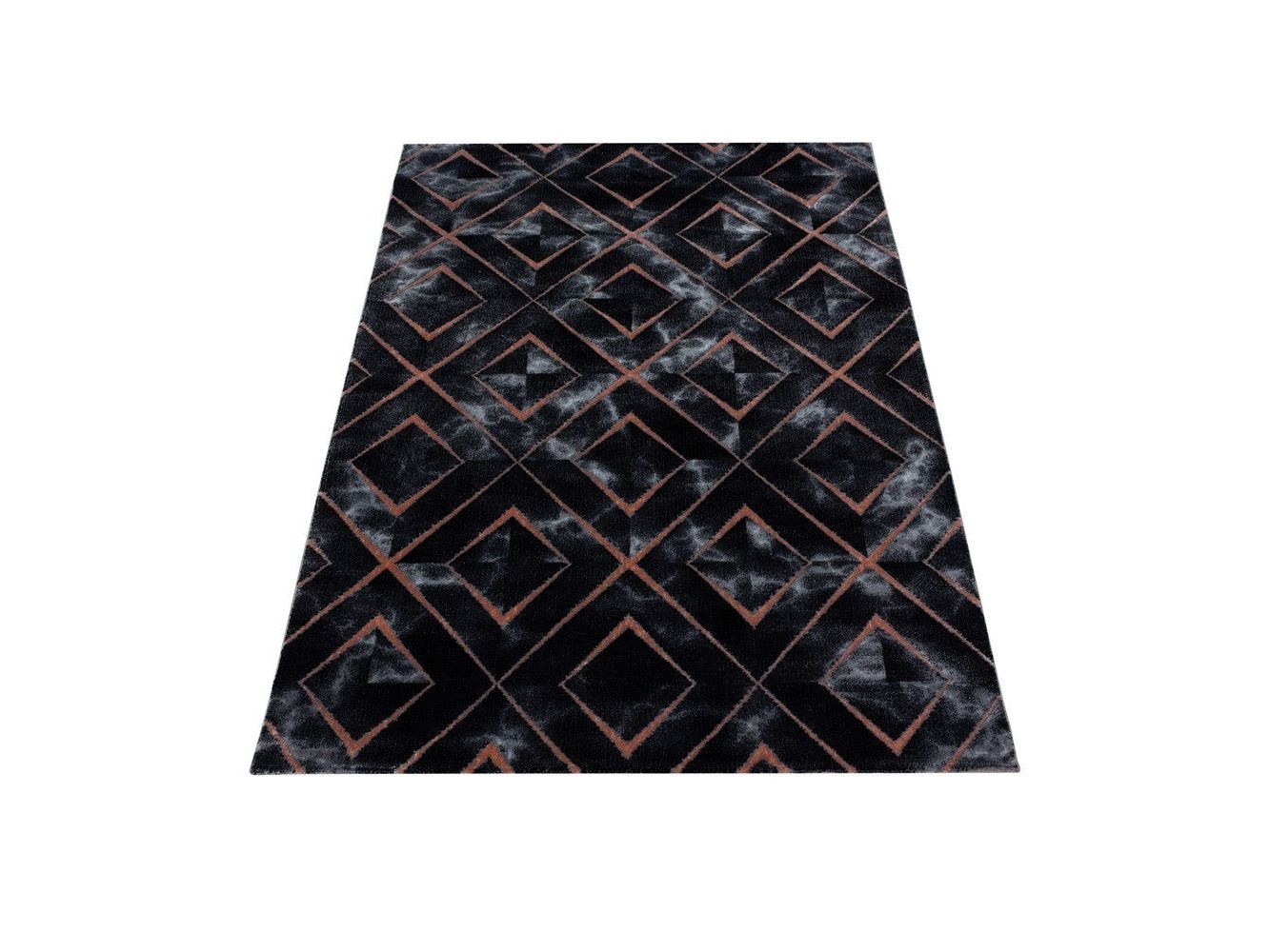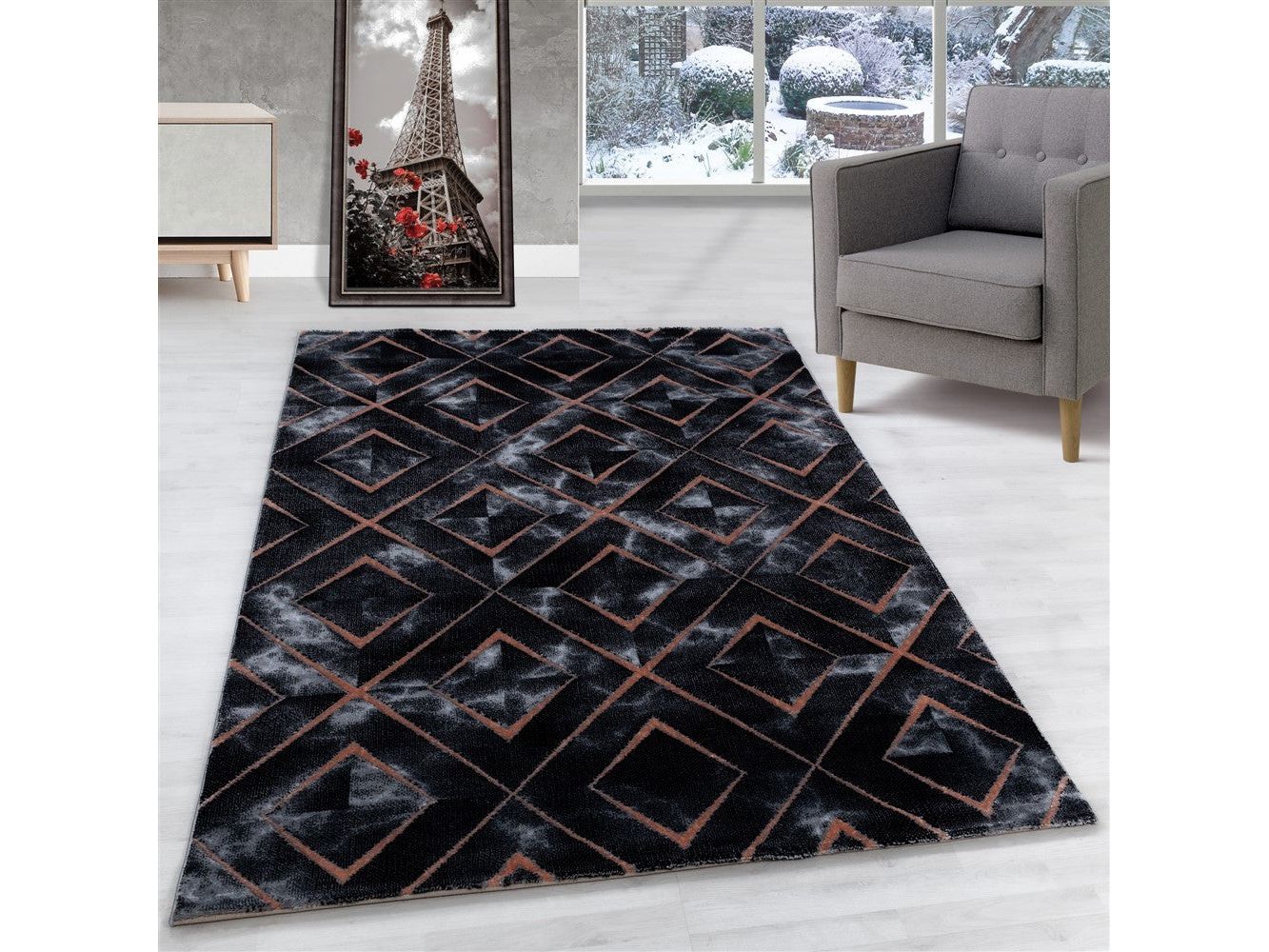 Wohnzimmerteppich Kurzflor Teppich Dunkel Marmoriert Rauten Karo Bronze