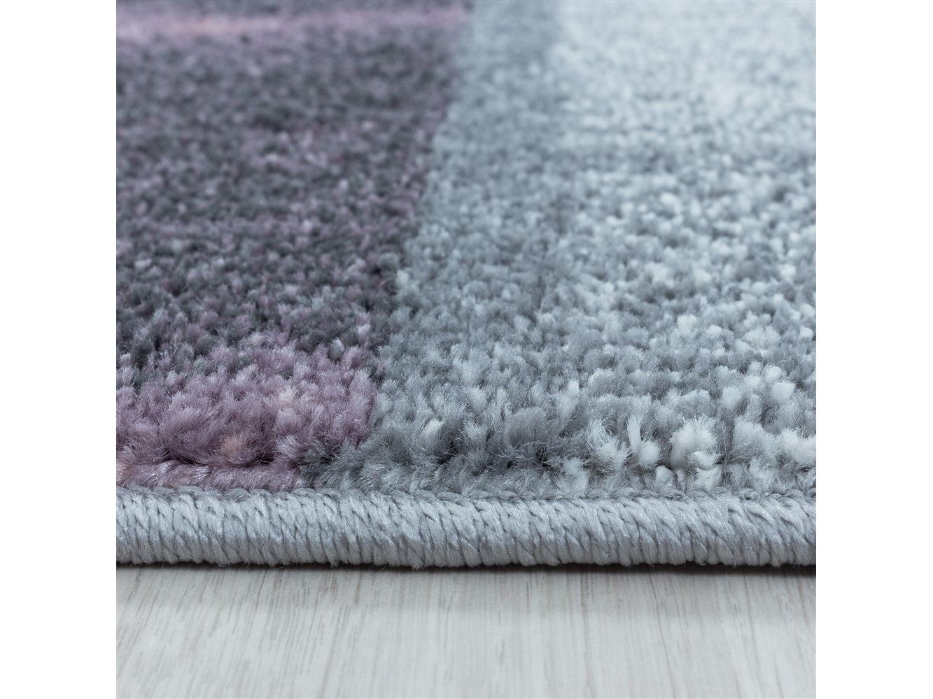 Wohnzimmerteppich Kurzflor Teppich Lila Grau Quadrat Muster Marmoriert Weich