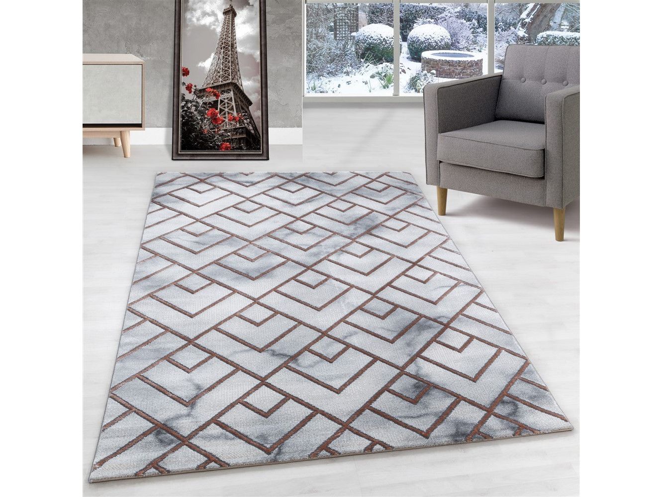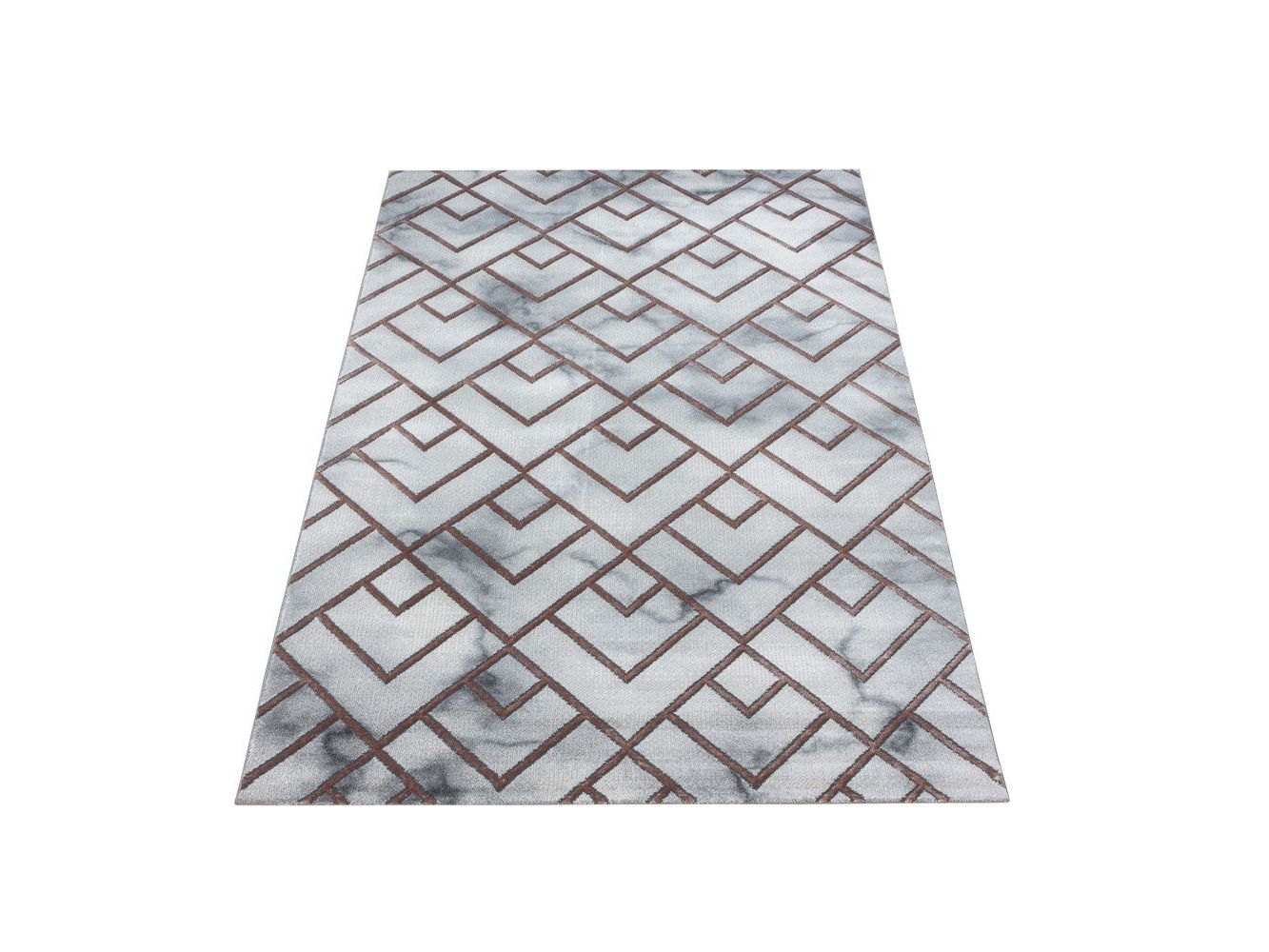 Wohnzimmerteppich Kurzflor Teppich Muster Marmoriert Linien Karo Bronze