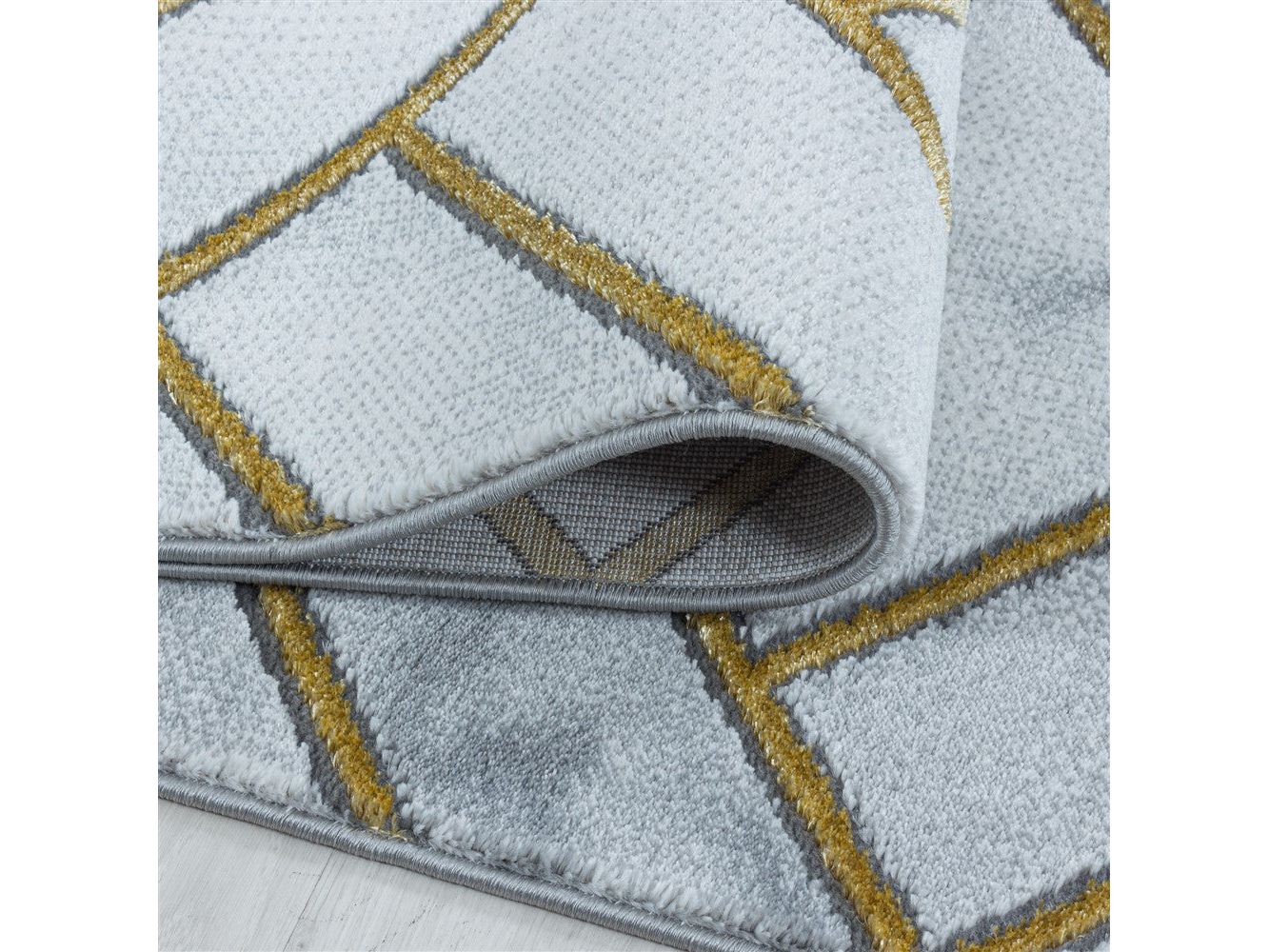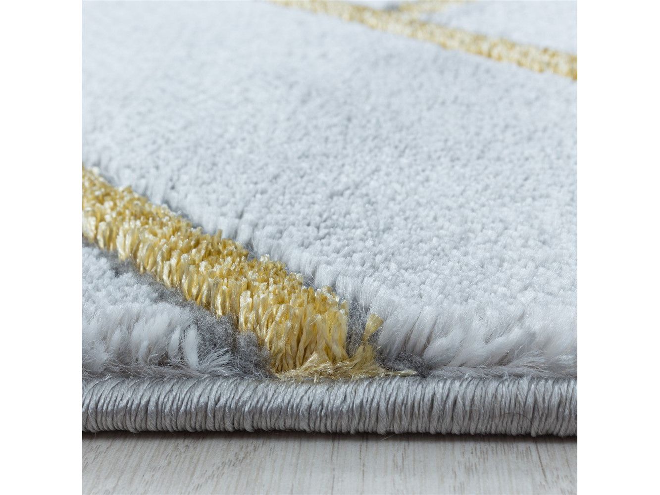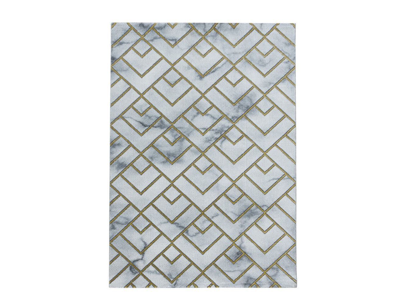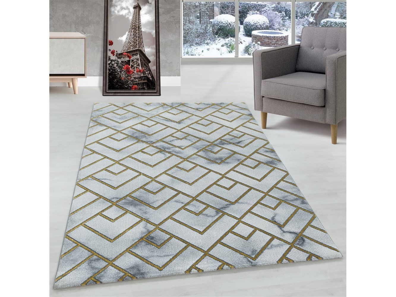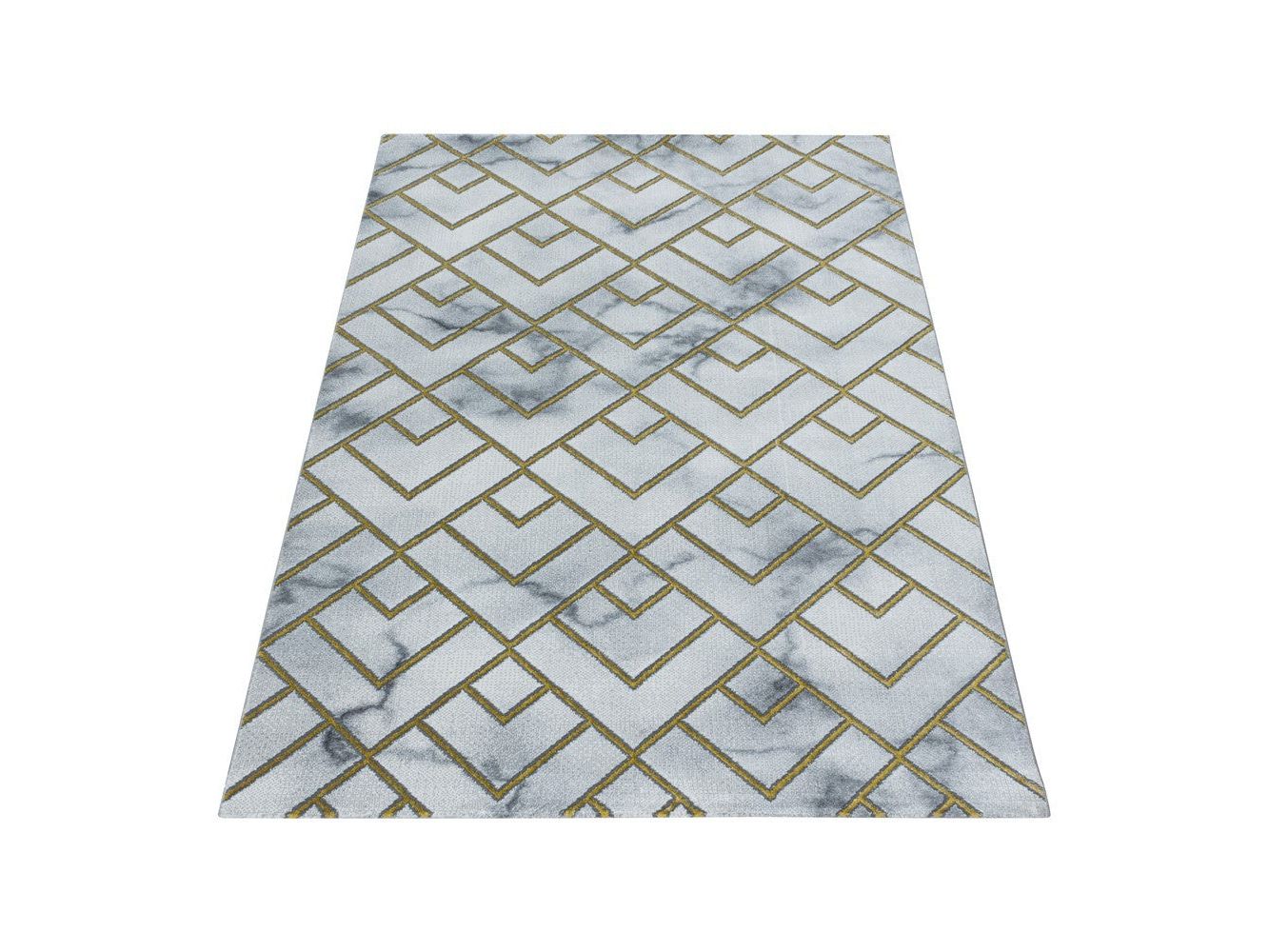 Wohnzimmerteppich Kurzflor Teppich Muster Marmoriert Linien Karo Gold