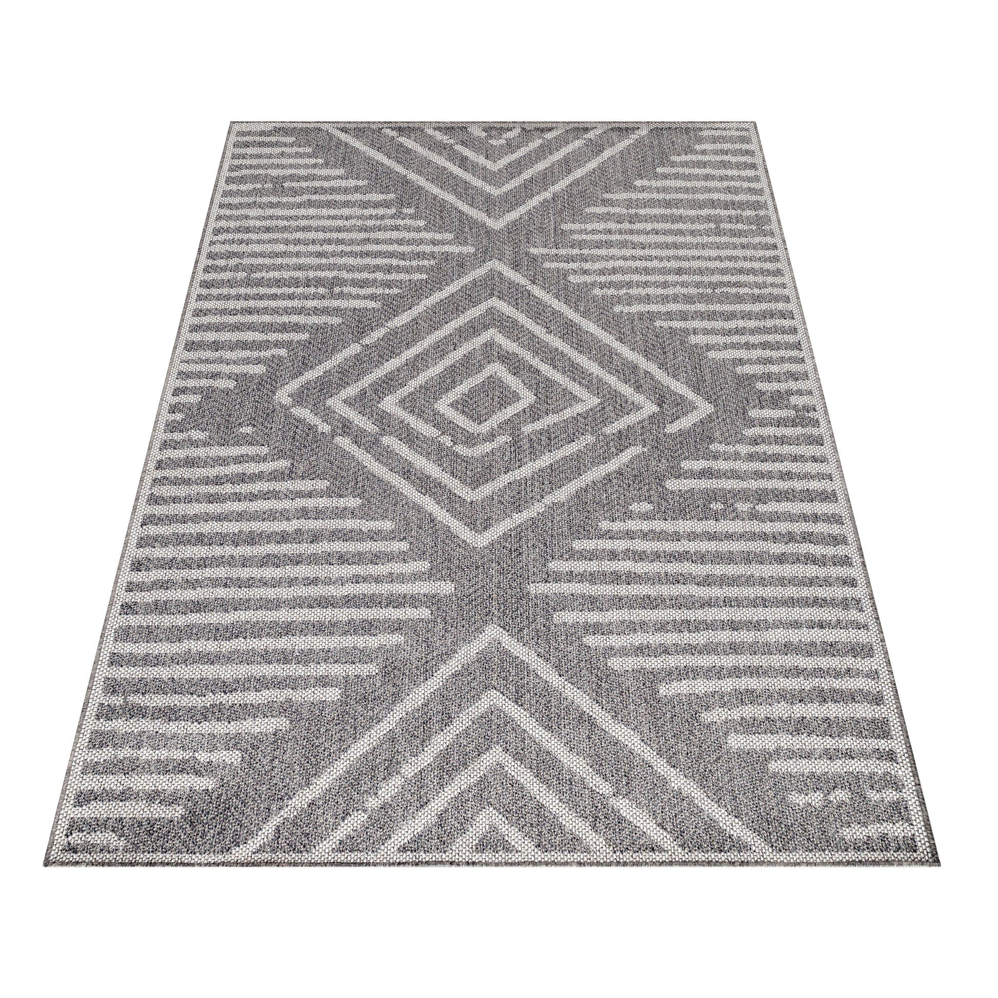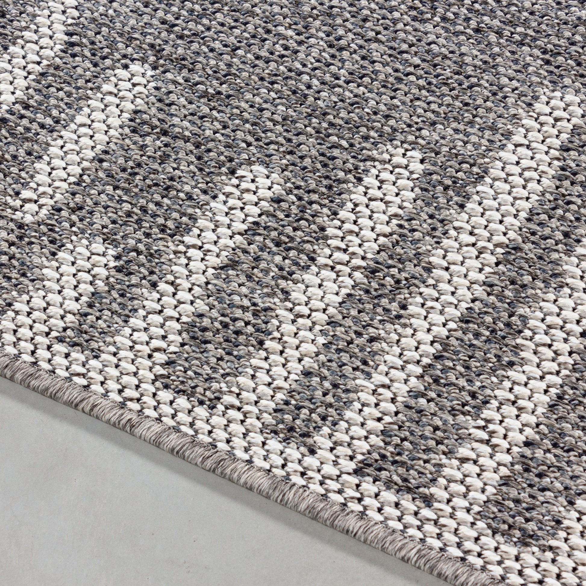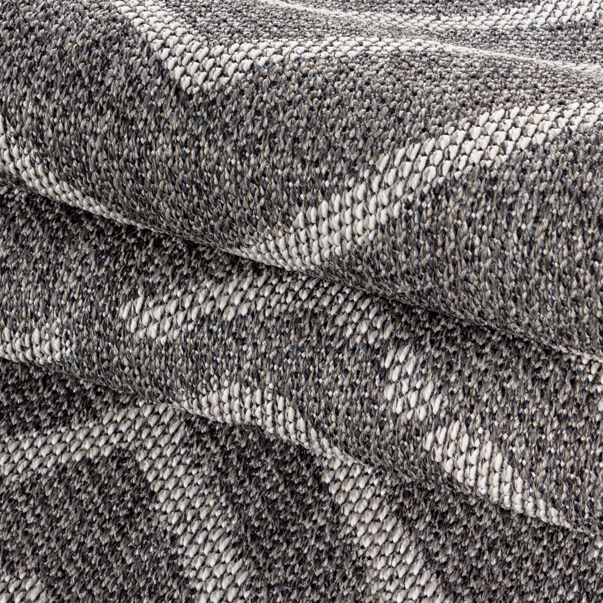 87 % Polypropylene, 6 % Polyester, 7 % Latex 100 % PP. Heatset, Florhöhe: 7 mm, 1400 gr (±%5)M2, Rücken aus Polypropylen Outdoorteppiche, Gestreift Design, Farbe Grau, Teppich für Terasse-Balkon-Küche, Rücken aus Polypropylen