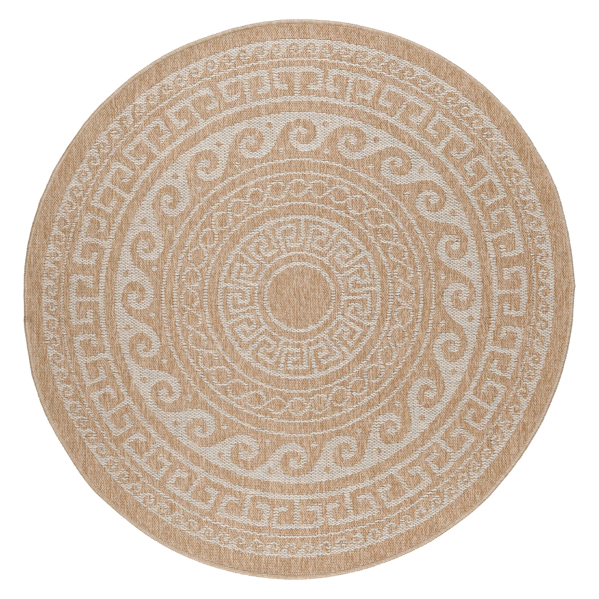90 % Polypropylene, 10 % Polyester 100 % PP. Heatset Friese, Florhöhe: 3 mm, 76.800 Points, 1600 gr (±%5)M2, Rücken aus Polypropylen Outdoorteppiche, Vintage Design, Farbe Beige, Teppich für Terasse-Balkon-Küche, Rücken aus Polypropylen