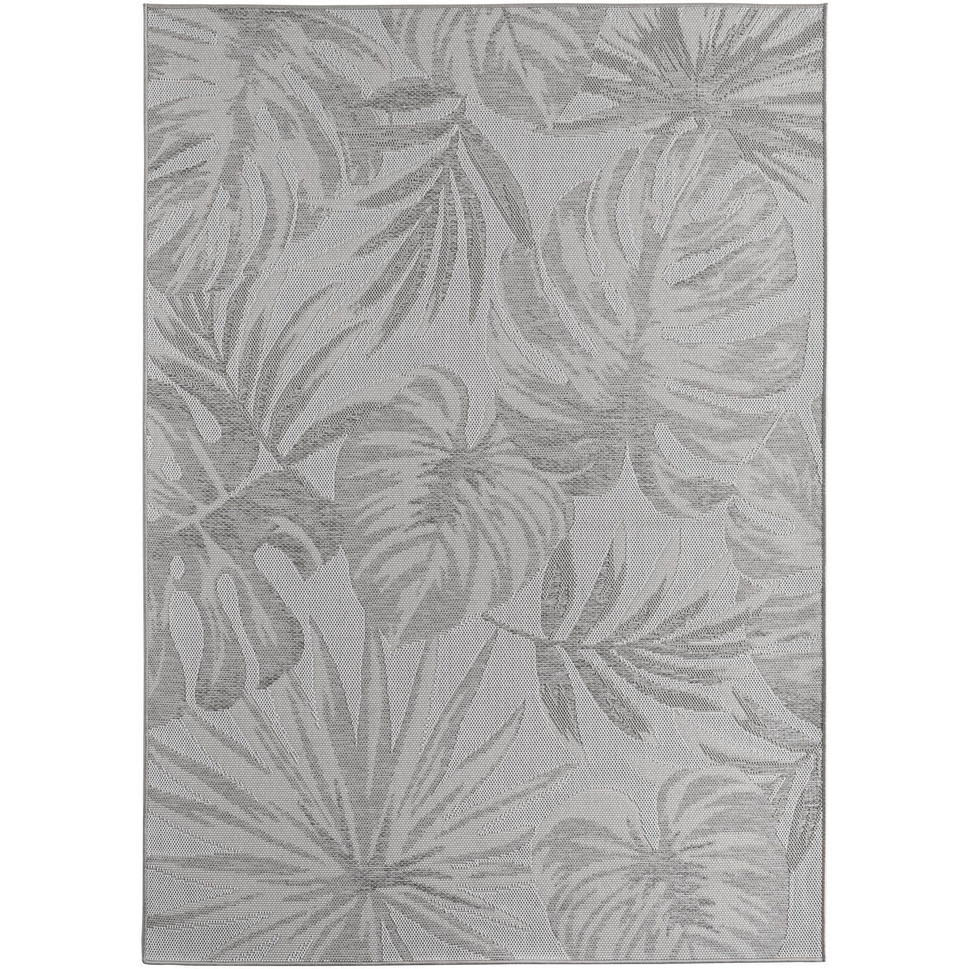 Outdoorteppiche Grau 8x25 cm Läufer, Wetterfest & UV-beständig, ideal für Küche, Balkon, Terrasse auch Wohnzimmer und Esszimmer, Palmblätter-Design, Leicht zu Reinigen