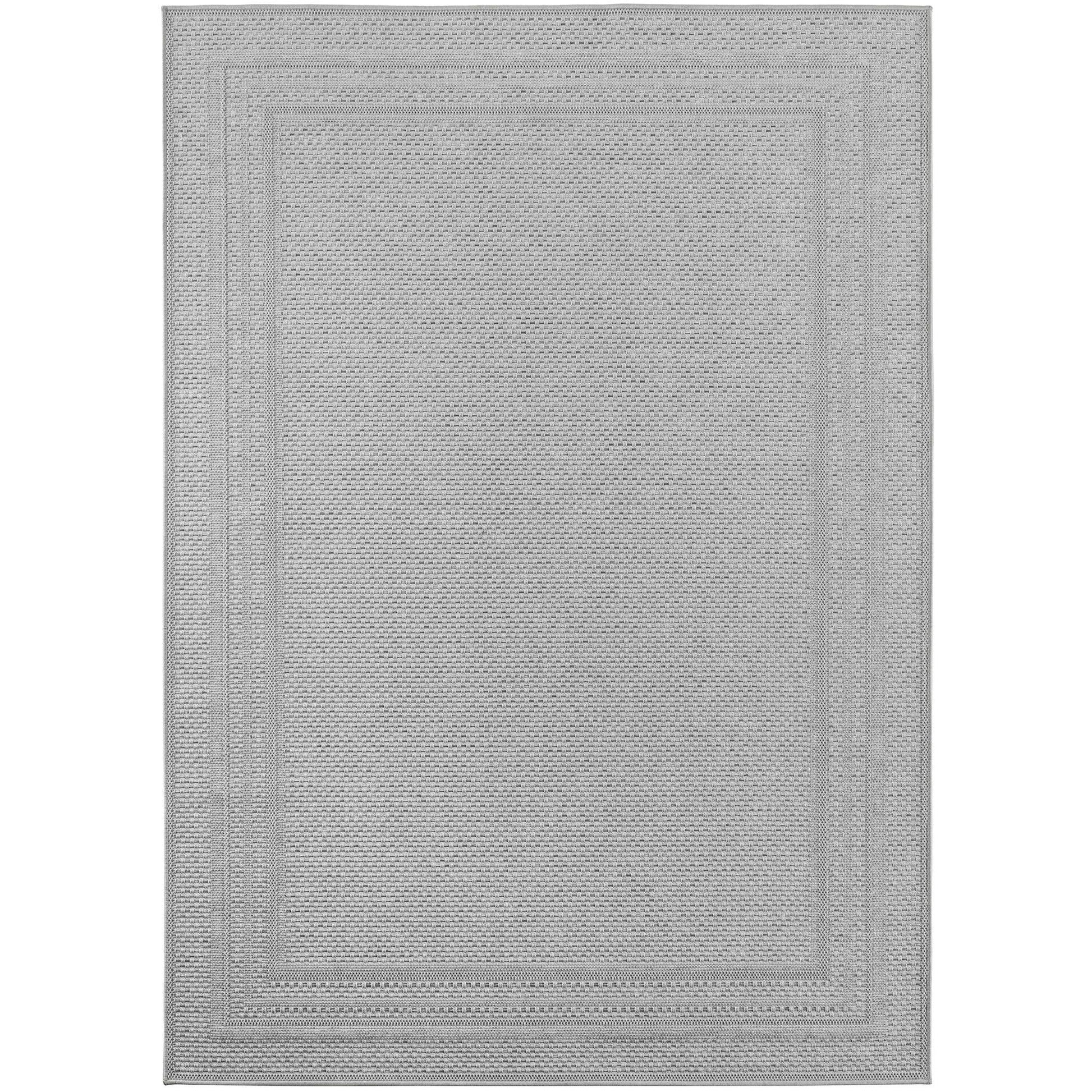 Outdoorteppiche Grau 8x25 cm Läufer, Wetterfest & UV-beständig, ideal für Küche, Balkon, Terrasse auch Wohnzimmer und Esszimmer, Einfarbiges Design mit Bordüre, Leicht zu Reinigen