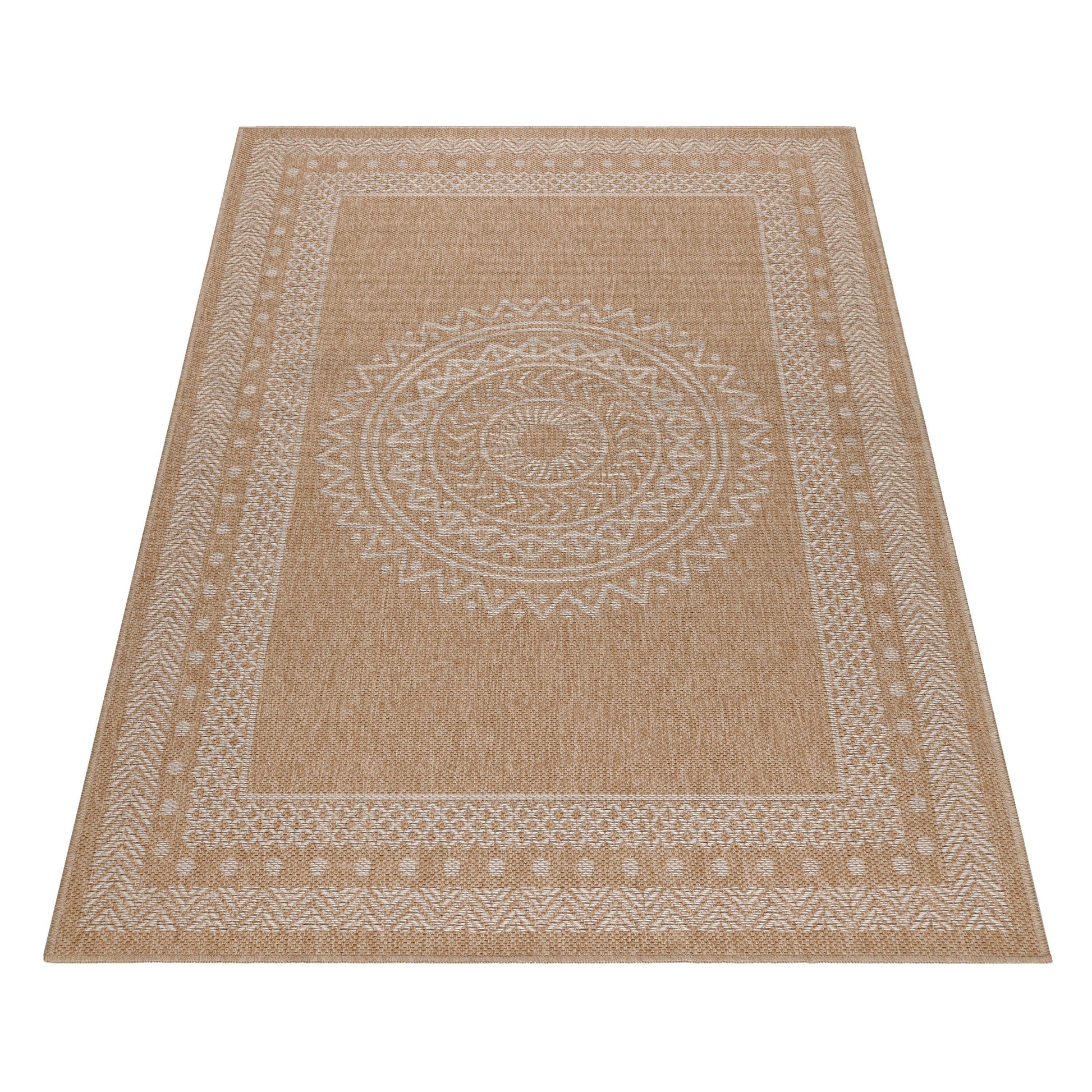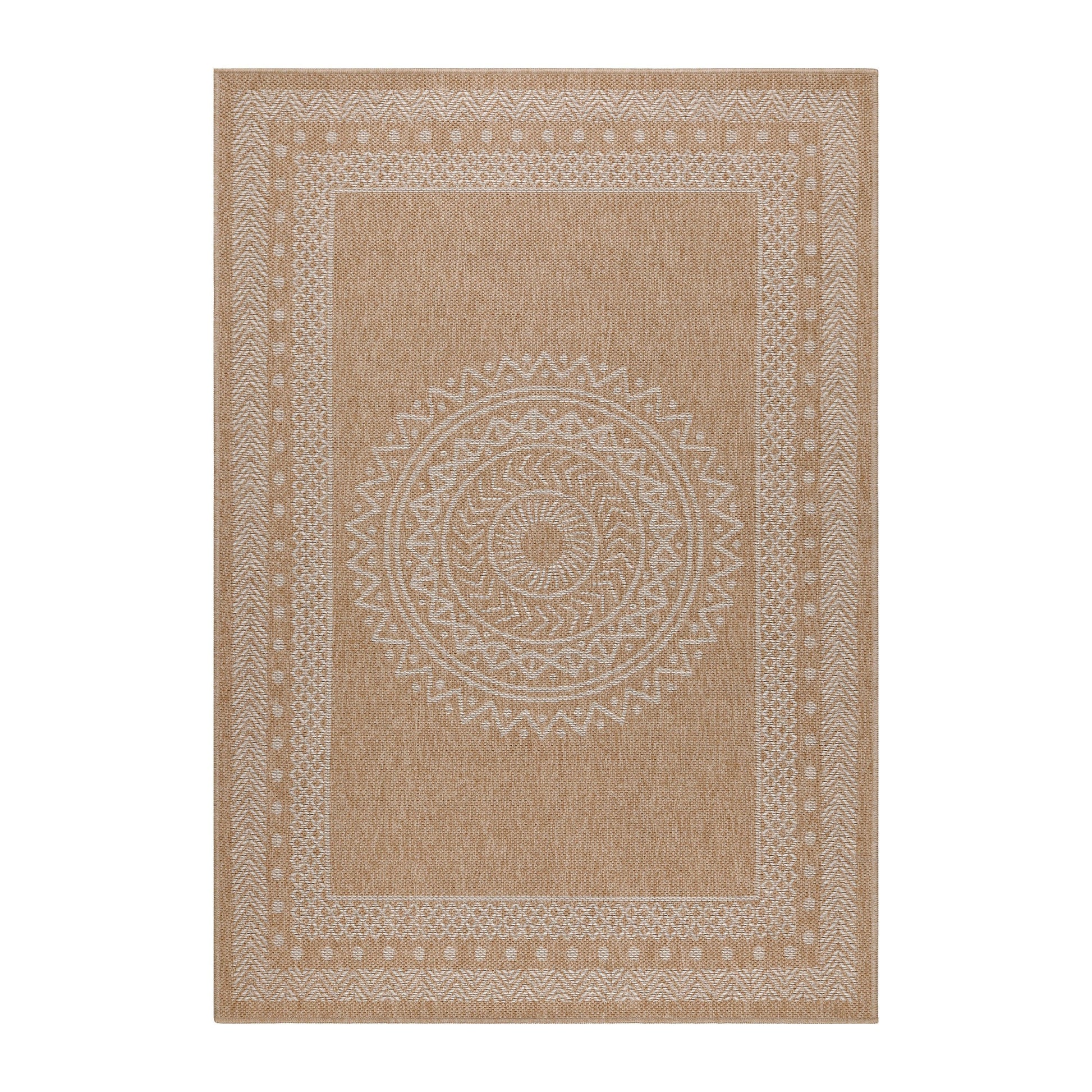 90 % Polypropylene, 10 % Polyester 100 % PP. Heatset Friese, Florhöhe: 3 mm, 76.800 Points, 1600 gr (±%5)M2, Rücken aus Polypropylen Outdoorteppiche, Vintage Design, Farbe Beige, Teppich für Terasse-Balkon-Küche, Rücken aus Polypropylen