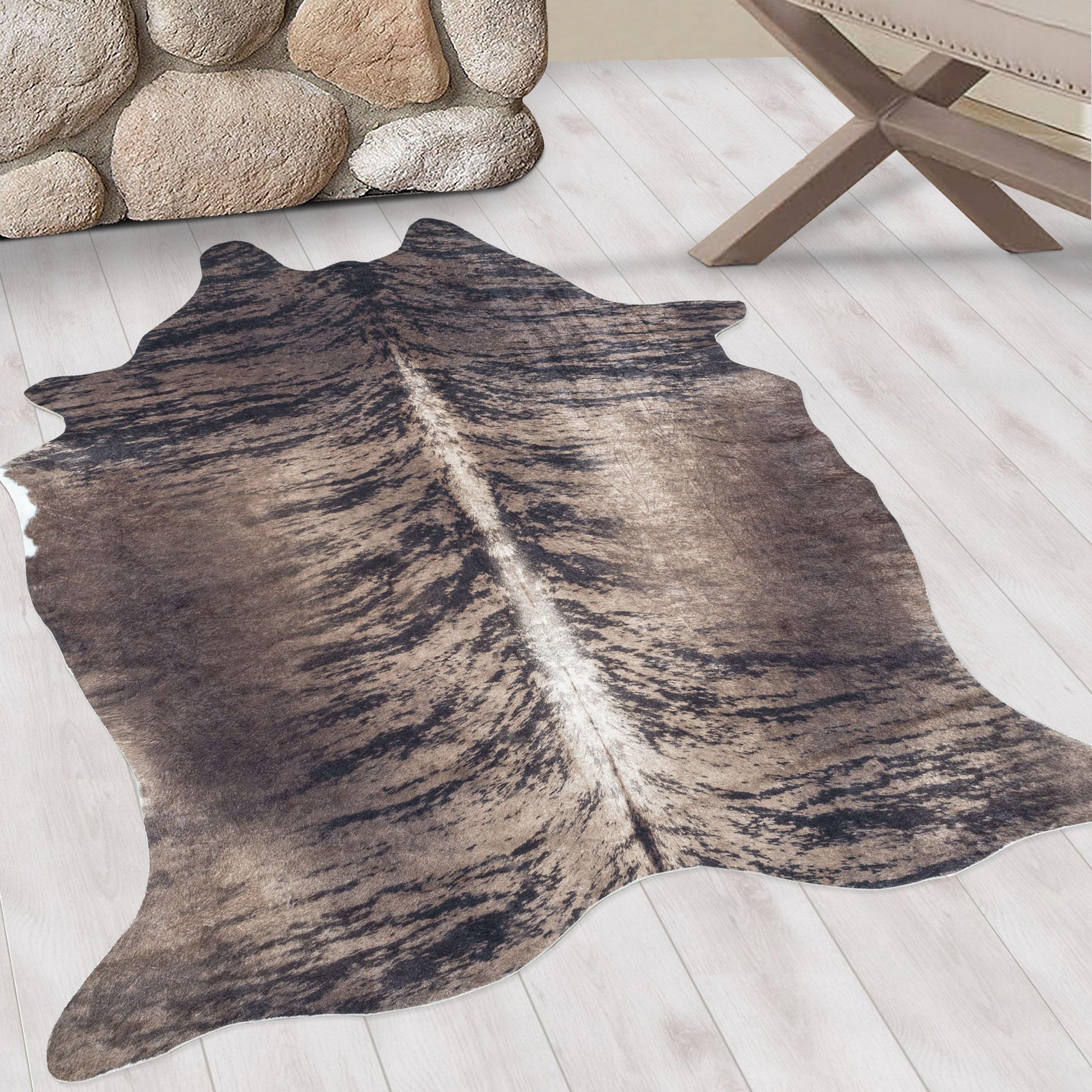 Waschbarer Teppich, Rindsleder Imitat, Farbe Braun, Teppich für Wohnzimmer, Rücken aus Wildleder