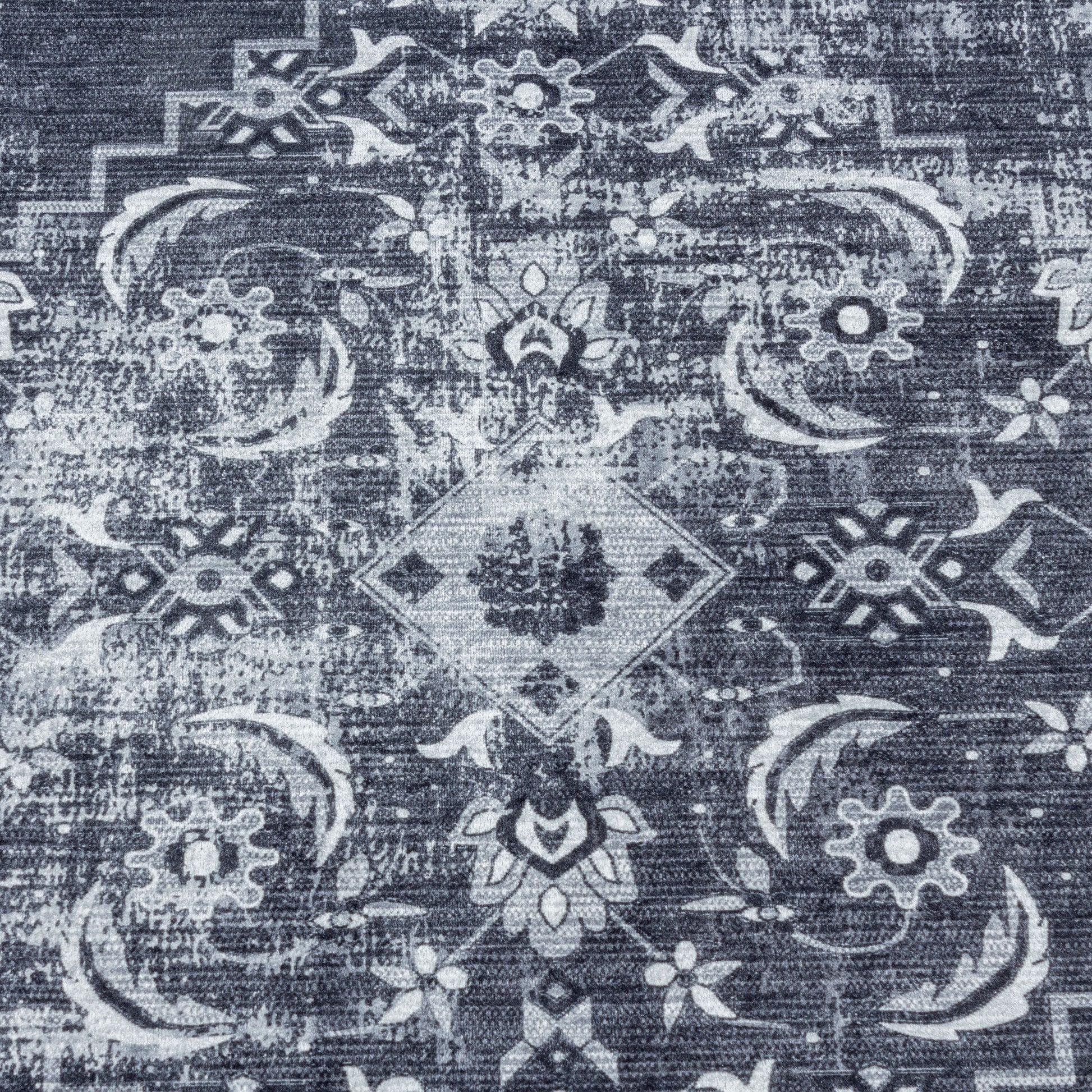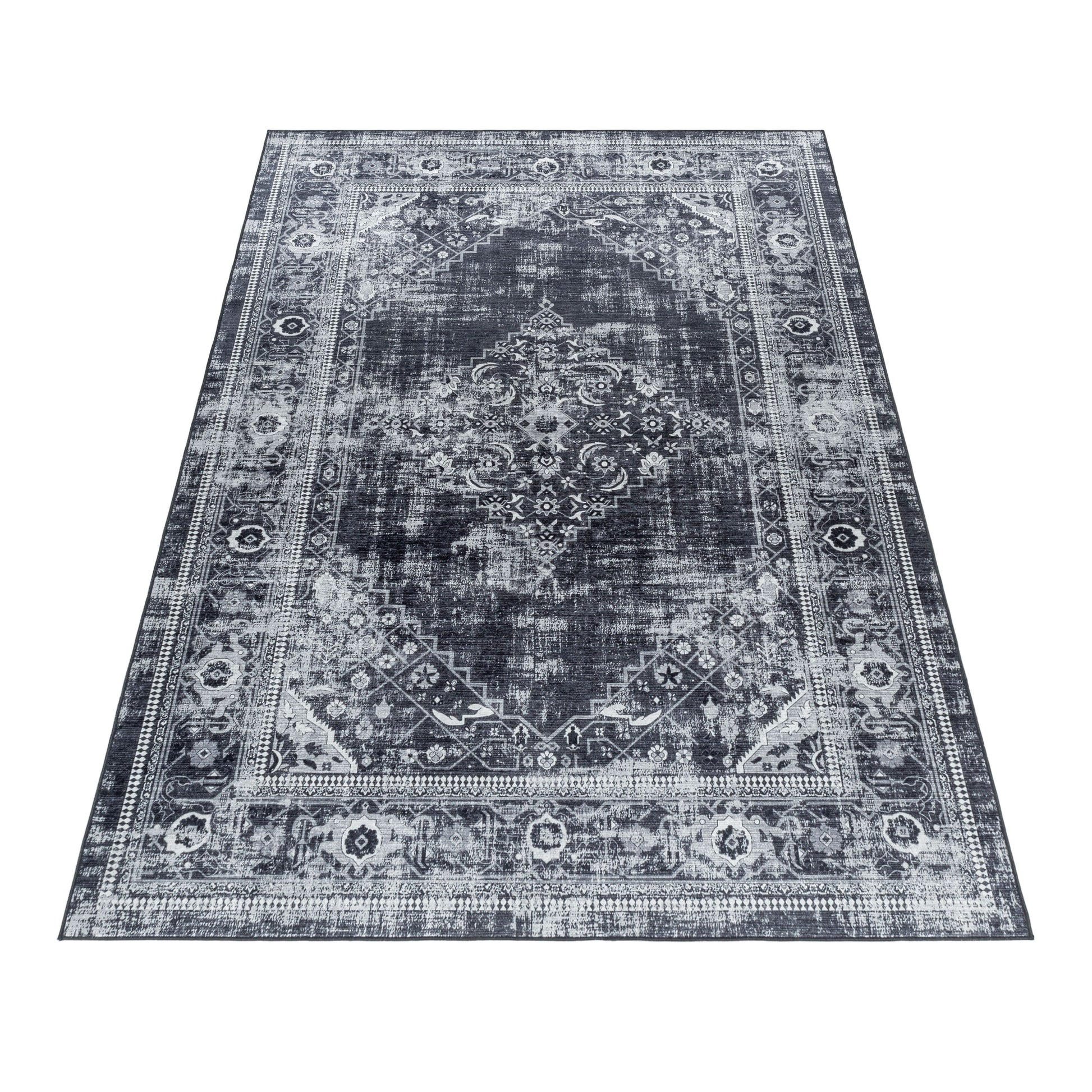 Waschbarer Teppich, Orientalisch Design, Farbe Schwarz, Teppich für Wohnzimmer, Rücken aus Canvas