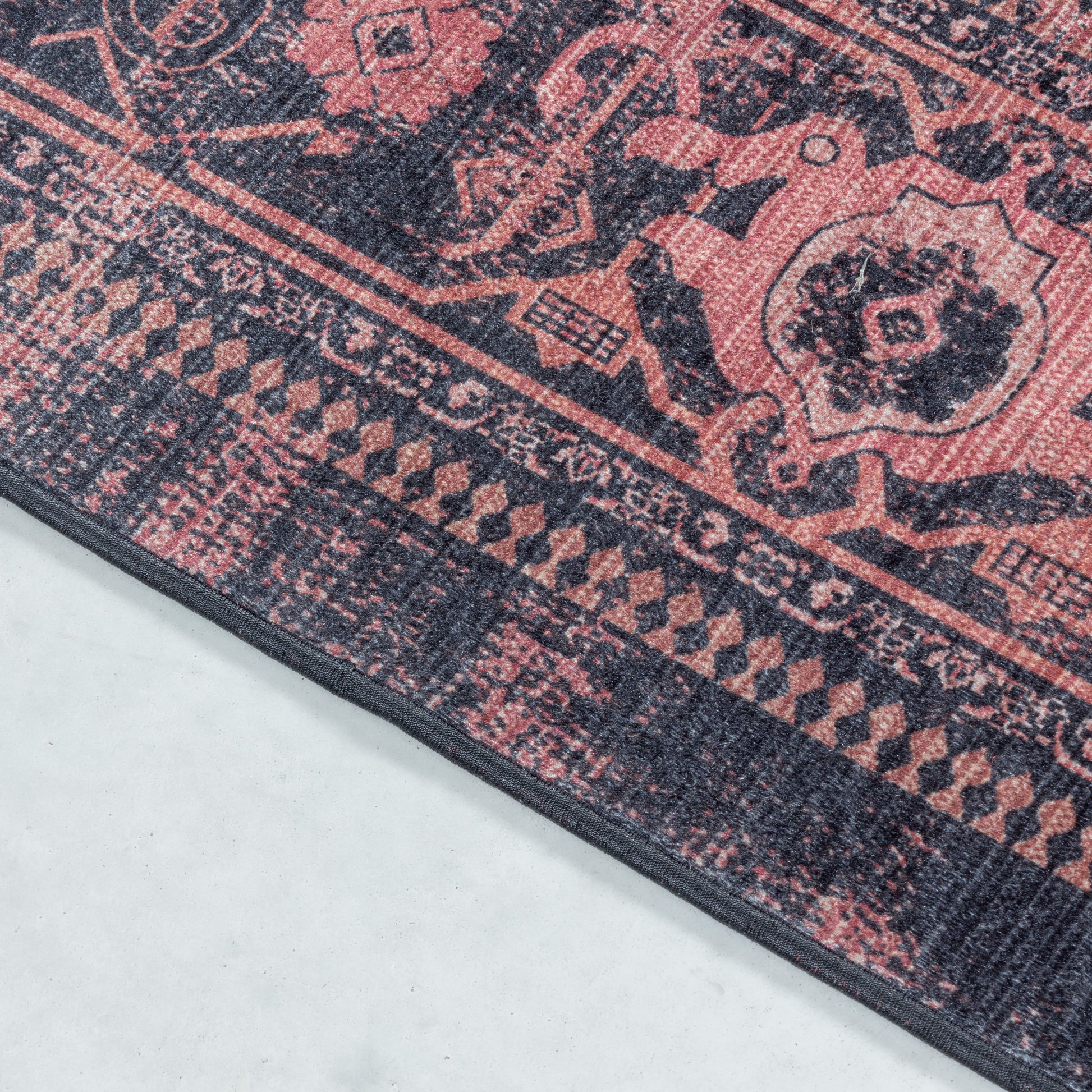 Waschbarer Teppich, Orientalisch Design, Farbe Rot, Teppich für Wohnzimmer, Rücken aus Canvas