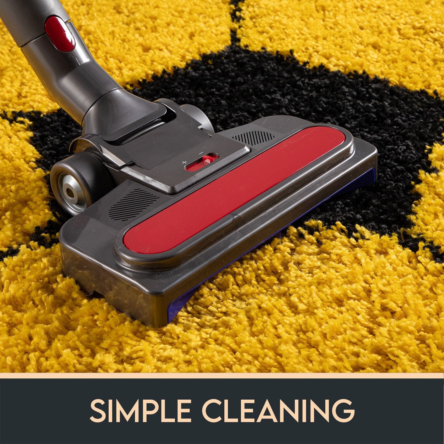 60 % Polypropylene, 30 % Jute, 5 % Polyester, 5 % Latex 100 % PP. Shaggy, Florhöhe: 50 mm, 57.600 Points, 1950 gr (±%5)M2, Rücken aus Jute Kinderteppiche, Fußball-Design, Farbe Gelb, Teppich für Kinderzimmer, Rücken aus Jute
